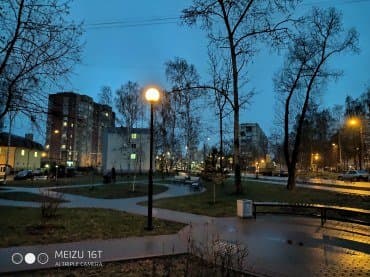 Фронтальная камера у Meizu 16T имеет сенсор с разрешением 16 Мп (1/3,1″, 1,0 мкм) и объектив f/2,2 (26 мм) без автофокуса. Снимки получаются немного нерезкие, да еще и почему-то белесые при любом освещении. На плохое освещение камера реагирует вполне ожидаемо.