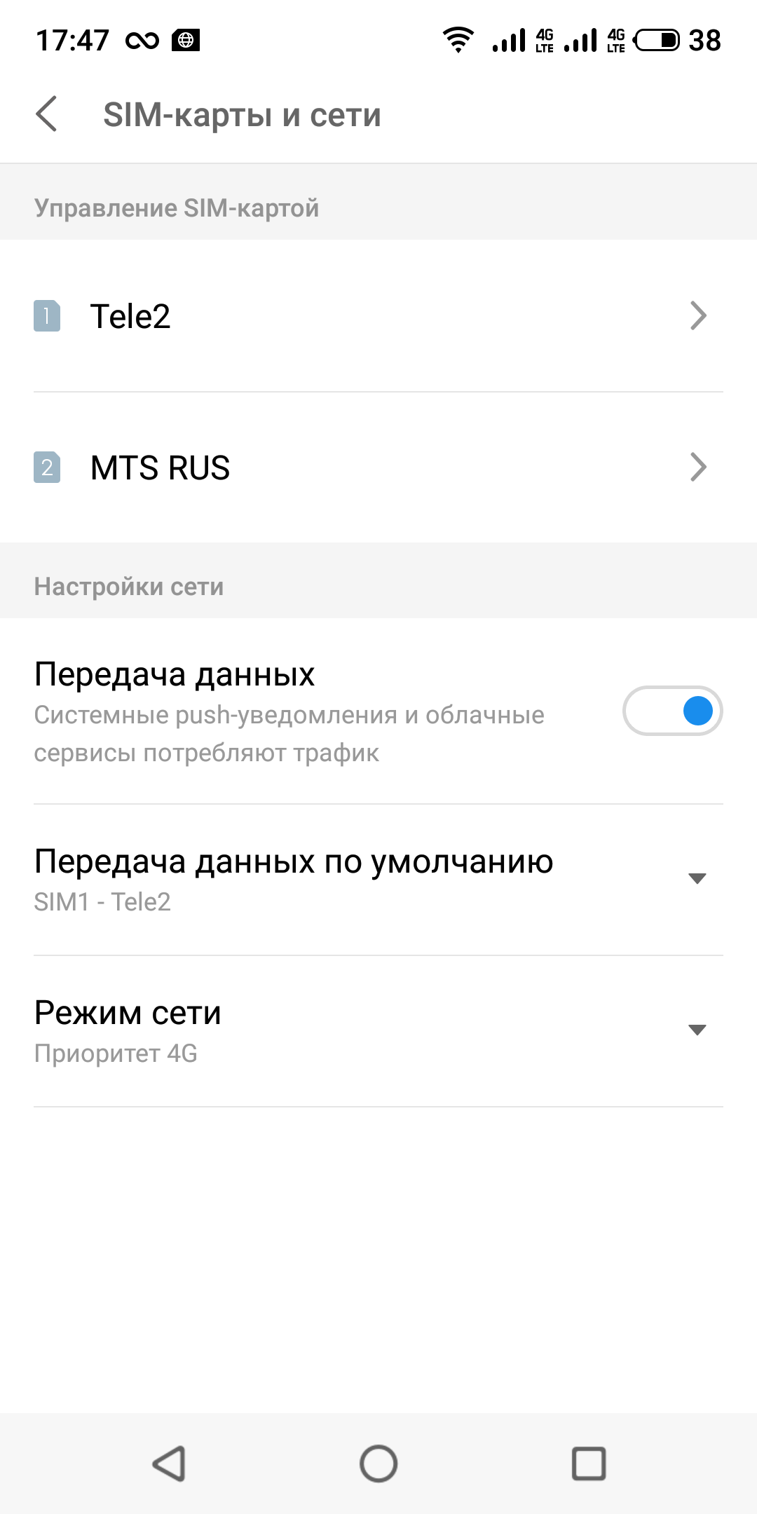 Аппаратная платформа позволяет смартфону поддерживать в режиме активного ожидания обе SIM-карты в 4G одновременно. Таким образом, SIM-карта для голосовой связи будет работать в режиме ожидания в 4G, даже если для передачи данных в 4G назначена другая карта. Работают карты в режиме Dual SIM Dual Standby, радиомодем здесь один.