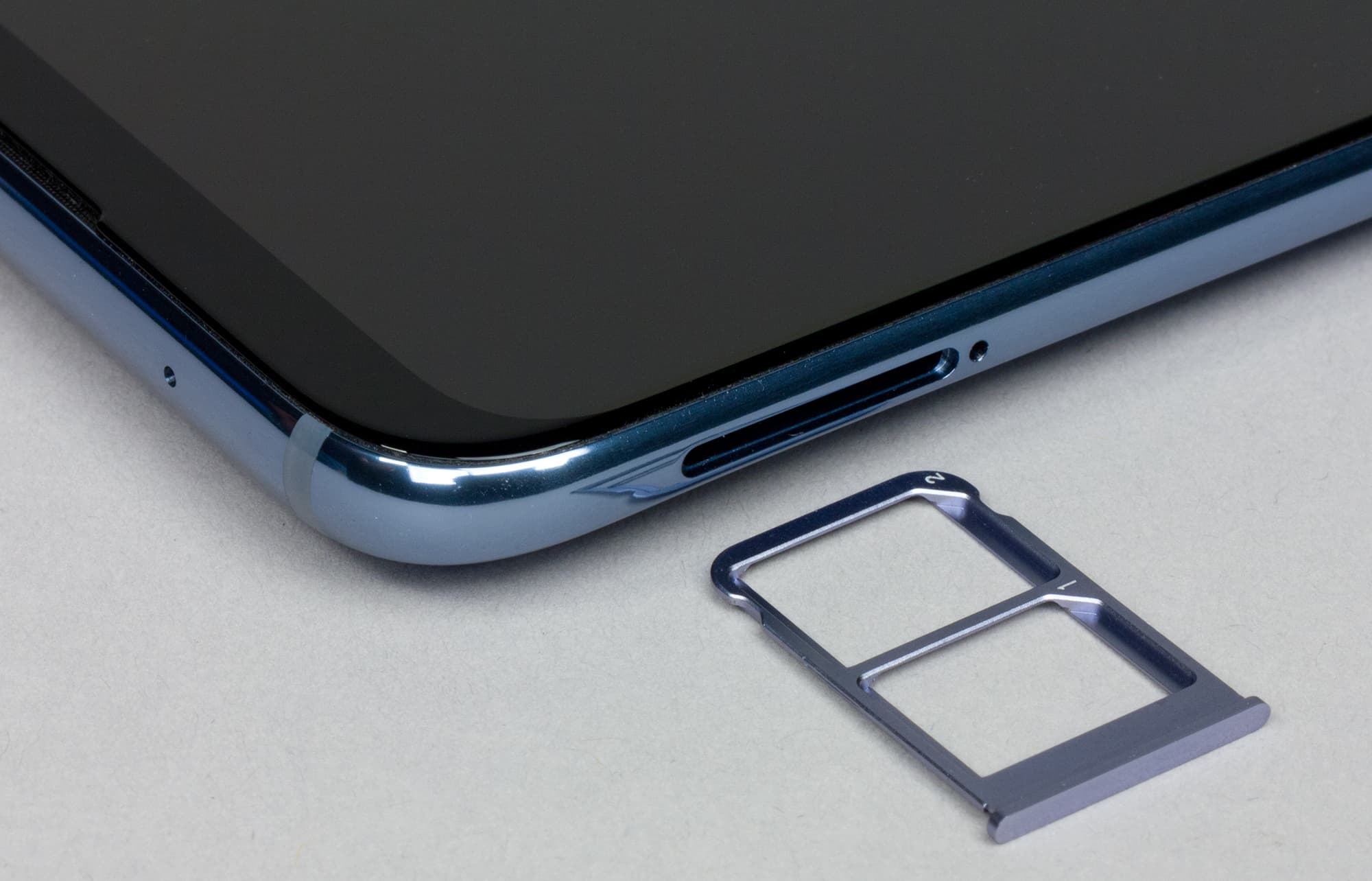 Лоток для двух карточек Nano-SIM врезан в другую боковую грань, и вставить в него карту памяти нельзя.