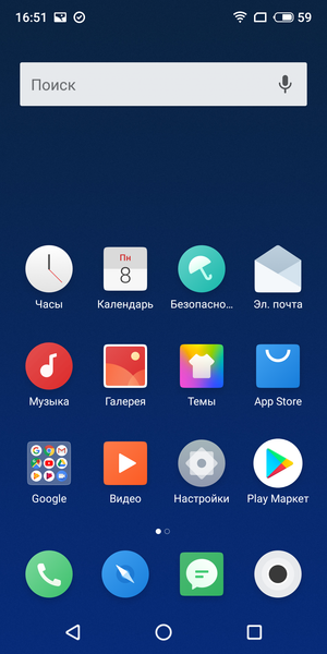 Flyme OS 7 — все такой же максимально лаконичный по сравнению с иными «развесистыми» китайскими оболочками красивый интерфейс с упорядоченными меню и одинакового размера иконками. В смартфоне предустановлены файловый менеджер, диктофон и целый набор «инструментов»: «линейка», «уровень», фонарик с режимом SOS, компас и многое другое.