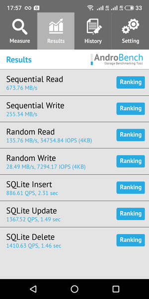 Результаты теста AndroBench на скорость работы с памятью: