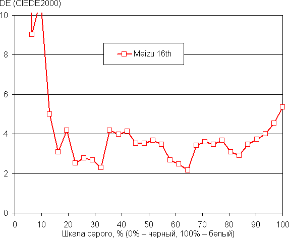 (Самые темные области шкалы серого в большинстве случаев можно не учитывать, так как там баланс цветов не имеет большого значения, да и погрешность измерений цветовых характеристик на низкой яркости большая.)