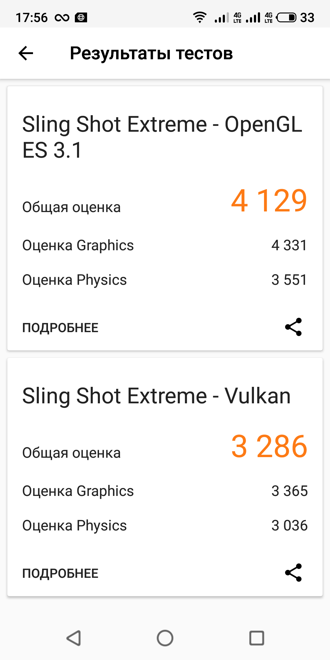 | 3DMark Sling Shot Ex Vulkan (больше — лучше) | 3286 | 2918 | 2840 | 1217 |