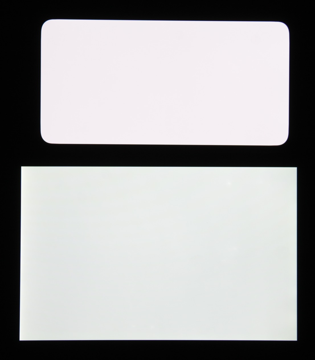 Экран характеризуется великолепными углами обзора. Правда, белый цвет при отклонении даже на небольшие углы приобретает едва заметный сине-зеленый или розоватый оттенок, но черный цвет остается просто черным под любыми углами. Он настолько черный, что параметр контрастности в данном случае неприменим. Для сравнения приведем фотографии, на которых на экраны Meizu 16th (профиль Стандартный режим) и второго участника сравнения выведены одинаковые изображения, при этом яркость экранов изначально установлена примерно на 200 кд/м², а цветовой баланс на фотоаппарате принудительно переключен на 6500 К.