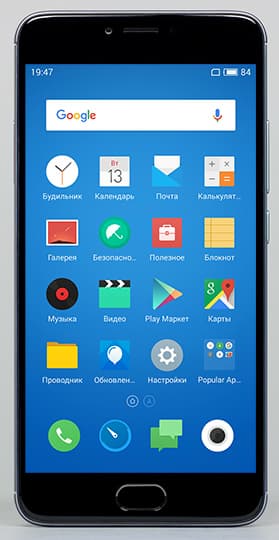 Телефонное приложение поддерживает Smart Dial, то есть во время набора телефонного номера сразу осуществляется и поиск по первым буквам в контактах, имеется и поддержка непрерывного ввода типа Swype. В аппарате предустановлена альтернативная клавиатура стороннего разработчика TouchPal с широким набором настроек и возможностей. Для удобства работы с крупным экраном с помощью одной руки стандартно для смартфонов Meizu предусмотрена функция Smart Touch, которая позволяет сдвинуть весь рабочий экран наполовину вниз, ближе к пальцам.