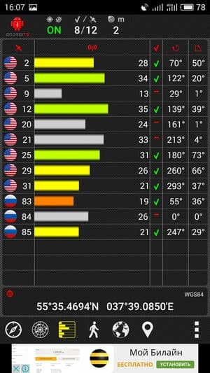 Навигационный модуль работает с GPS (А-GPS) и Глонасс без поддержки китайской Beidou. К скорости работы навигационного модуля претензий нет, первые спутники обнаруживаются при холодном старте в течение первых секунд. Смартфон оборудован сенсором магнитного поля, на основе которого функционирует компас навигационных программ.