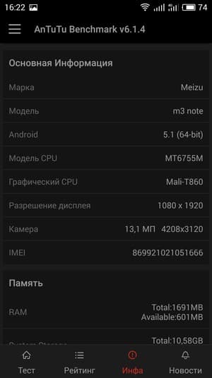 Основные характеристики Meizu M3 Note