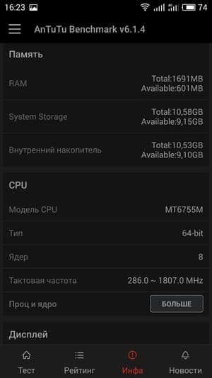 | Meizu Pro 6 | 2560 мА·ч | 14 ч. 40 м. | 9 ч. 50 м. | 3 ч. 10 м. |