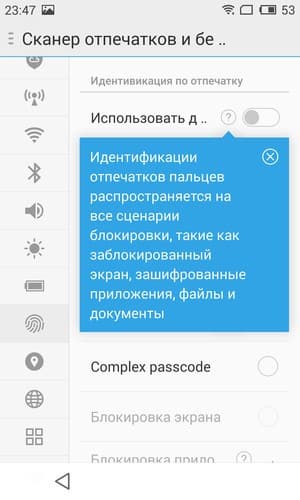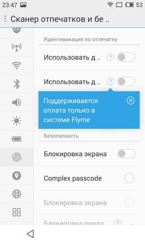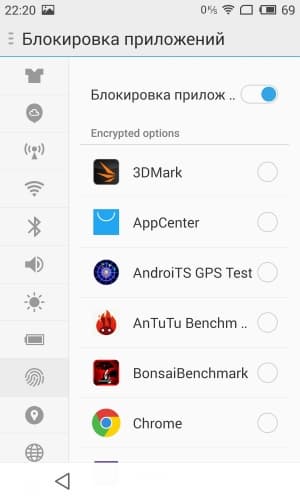 Помимо собственно функции разблокировки экрана, а также подтверждения платежей в системе Flyme, с помощью сканера отпечатков пальцев можно еще и защитить любую из установленных в смартфоне программ, которые смогут быть запущены только после проверки отпечатка пальца владельца, даже если на тот момент аппарат разблокирован. Это может быть удобно, например, для забывчивого хозяина смартфона, часто оставляющего незаблокированный аппарат без присмотра.