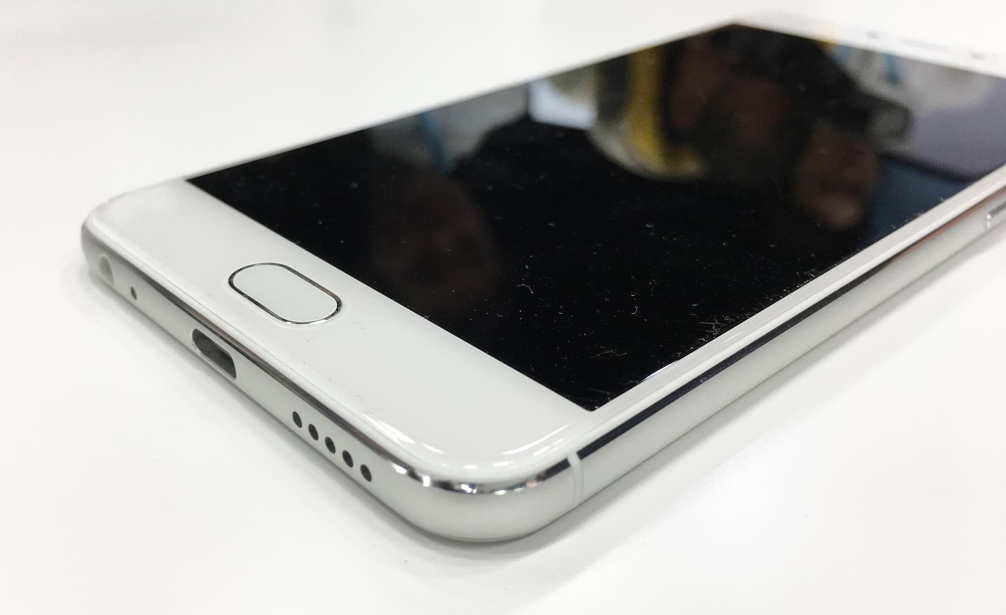 Итак, в качестве дисплея Meizu Pro 6 Plus получил экран Super AMOLED, только теперь уже гораздо большей диагонали (5,7 дюйма), что логично обусловило и значительное увеличение в размерах всего устройства целиком. Кроме того, увеличено разрешение экрана, теперь оно составляет 2560×1440 точек с плотностью 518 ppi. В новинке тоже реализована функция распознавания силы нажатия 3D Press. Экран защищен 2.5D-стеклом Gorilla Glass 4 с покатыми краями.