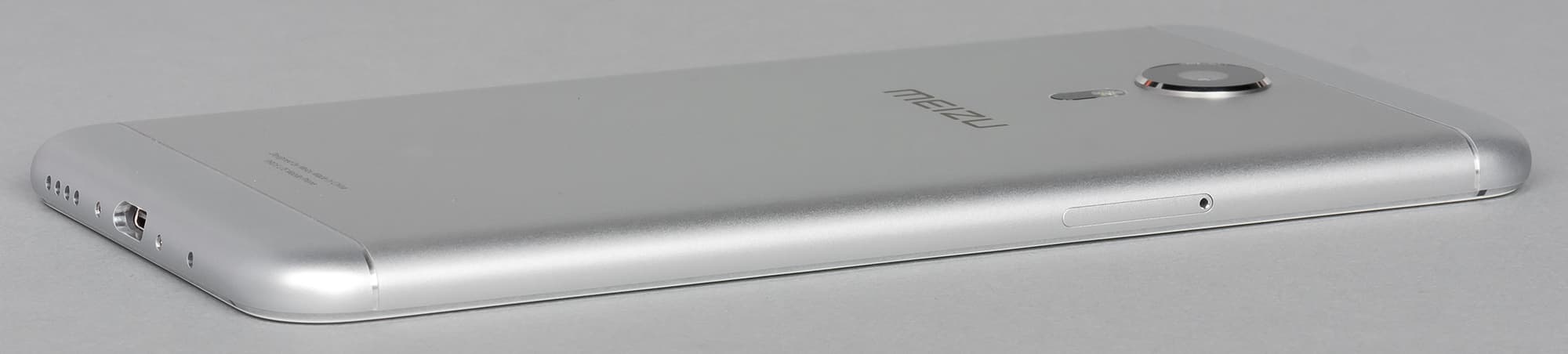 С виду новинка напоминает тот же МХ5, однако в руке смартфон ощущается совершенно иначе. Виной тому закругленные боковины корпуса и покатые края стекла — всё вместе это создает законченную округлую форму боковых граней, за счет чего аппарат напоминает iPhone 6-го поколения. Этим он заметно и, надо сказать, положительно отличается от МХ5, у которого корпус напоминает этакую лодочку, где закругления боковых граней не имеют завершенности, а наоборот, резко обрываются на месте склейки со стеклом, которое там тоже не округлое, а совершенно плоское. От этого верхняя часть боковин у МХ5 врезается в кожу ладоней, а полностью закругленные грани Pro 5 ощущаются комфортно и удерживаются надежно.