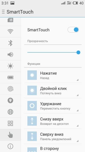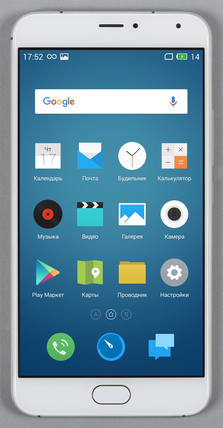 Телефонное приложение поддерживает Smart Dial, то есть во время набора телефонного номера сразу осуществляется и поиск по первым буквам в контактах. Поддержка ввода методом безотрывного скольжения Swype штатной клавиатурой не поддерживается, но в аппарате предустановлена альтернативная клавиатура стороннего разработчика TouchPal с более широким набором настроек и возможностей. Для удобства работы с крупным экраном с помощью одной руки стандартно для смартфонов Meizu предусмотрена функция Smart Touch. Она не делает меньше рабочую площадь экрана, но включение этого режима выводит на экран виртуальную круглую многофункциональную кнопку, которая позволяет сдвинуть весь рабочий экран наполовину вниз, ближе к большому пальцу управляющей руки.