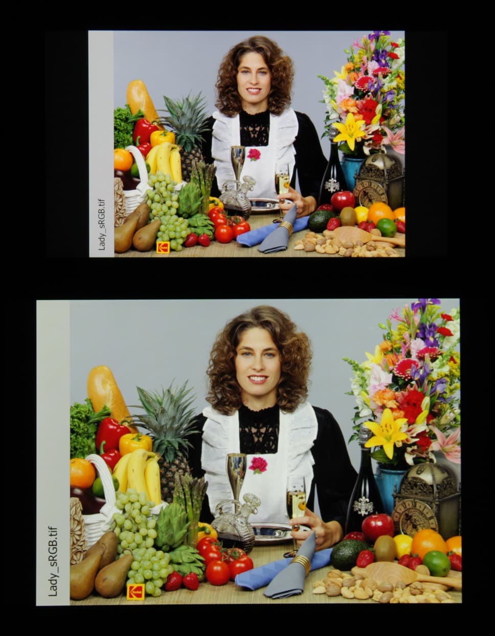 Отметим, что на экранах с широким цветовым охватом без соответствующей коррекции цвета обычных изображений, оптимизированных для устройств sRGB, выглядят неестественно насыщенными. Баланс оттенков на шкале серого приемлемый. Цветовая температура выше стандартных 6500 К, но отклонение от спектра абсолютно черного тела (ΔE) на большей части шкалы серого остается ниже 10 единиц, что для потребительского устройства считается хорошим показателем. При этом цветовая температура и ΔE мало изменяются от оттенка к оттенку (кроме самых темных) — это положительно сказывается на визуальной оценке цветового баланса: