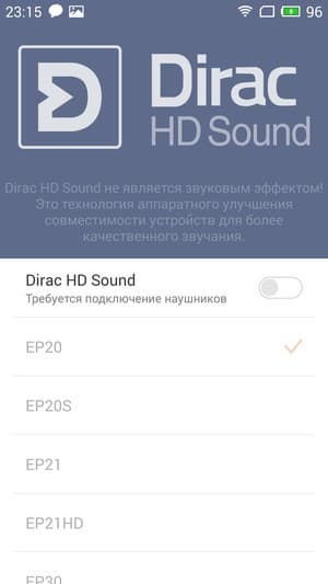 Аппарат оборудован одним мощным основным динамиком, но он издает весьма громкий и при этом чистый во всем спектре звук, низких частот в избытке, запаса громкости достаточно для любой окружающей обстановки. В наушниках ситуация еще лучше: звук густой и насыщенный, запаса громкости достаточно, а при подключении наушников пользователь может выбрать уровень усиления или самостоятельно протестировать сопротивление наушников, чтобы добиться высокого качества звучания с конкретным типом наушников. Для воспроизведения музыки используется фирменный проигрыватель. В его настройках имеется возможность использовать эквалайзер с предустановленными значениями. Для улучшения качества звучания в наушниках имеется возможность выбора из нескольких различных профилей системы Dirac HD Sound для наиболее популярных моделей наушников.