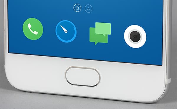 Среди элементов в верхней части передней панели неожиданно нашелся светодиодный индикатор уведомлений, что не может не радовать. Внизу под экраном у Meizu никогда не бывает трех сенсорных кнопок управления, только одна. В данном случае механическая клавиша mTouch 2.1 оборудована встроенным и довольно быстрым сканером отпечатков пальцев.