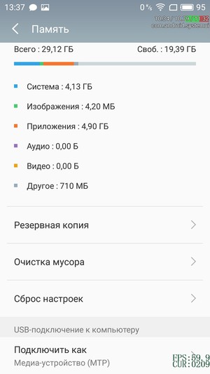 Разъем USB Type C поддерживает подключение внешних устройств в режиме USB OTG. От порта USB 3.0 настольного ПК файл размером 4 ГБ передается на смартфон по кабелю в течение 53 секунд (около 75 МБ/с). На этом месте стоит заметить, что Xiaomi Mi 5 то же самое проделывает за 135 секунд (около 30 МБ/с).