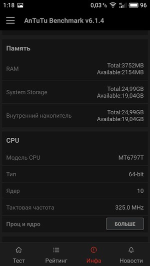 Емкость несъемной батареи, установленной в Meizu Pro 6, составляет 2560 мА·ч. Это не рекордная, но вполне достойная цифра, хотя у большинства конкурентов она уже подобралась к отметке в 3000 мА·ч. В противоположность новейшей Qualcomm Snapdragon 820, установленной в Xiaomi Mi 5, 10-ядерный процессор MTK нашего героя не продемонстрировал экономичности энергопотребления — наоборот, показал довольно-таки высокую расточительность. Это, в общем-то, было свойственно всем платформам MediaTek, особенно топовым, но всегда хочется верить, что в новых продуктах ситуация изменится к лучшему. К сожалению, пока на фоне своих коллег, современных флагманов, герой сегодняшнего обзора выглядит довольно бледно, особенно это касается энергозатрат при запуске требовательных игр.