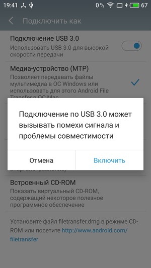 Смартфон поддерживает технологию быстрой зарядки mCharge 3.0. В комплекте идет сетевой адаптер с варьируемым напряжением (5/9/12 В, 2 А). Скорость зарядки потрясающая: от собственного ЗУ смартфон полностью заряжается в течение всего лишь одного часа током 1,85 А при напряжении 9 В.