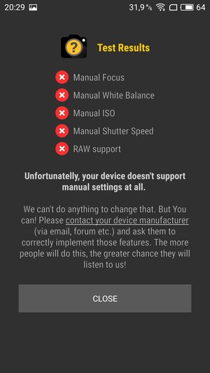 В остальном меню настроек не изменилось: есть возможность вручную выставлять ISO (максимальная чувствительность — ISO 1600), выдержку, экспокоррекцию, насыщенность, контраст и баланс белого; имеются дополнительные режимы — портретный, панорамный, макросъемка. Сторонним приложениям управление этими настройками через Camera2 API недоступно, нет и возможности сохранять снимки в RAW.