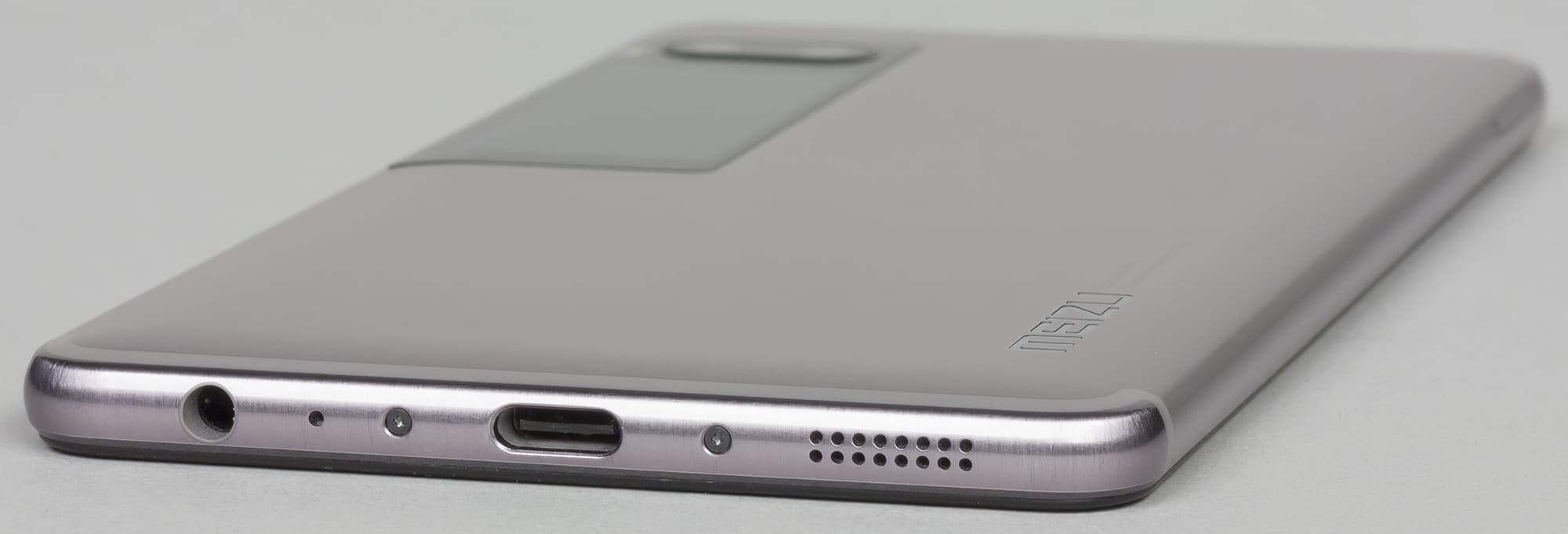 В нижний торец выведены разъем USB Type-C, основной громкоговоритель, а также 3,5-миллиметровый аудиовыход на наушники.