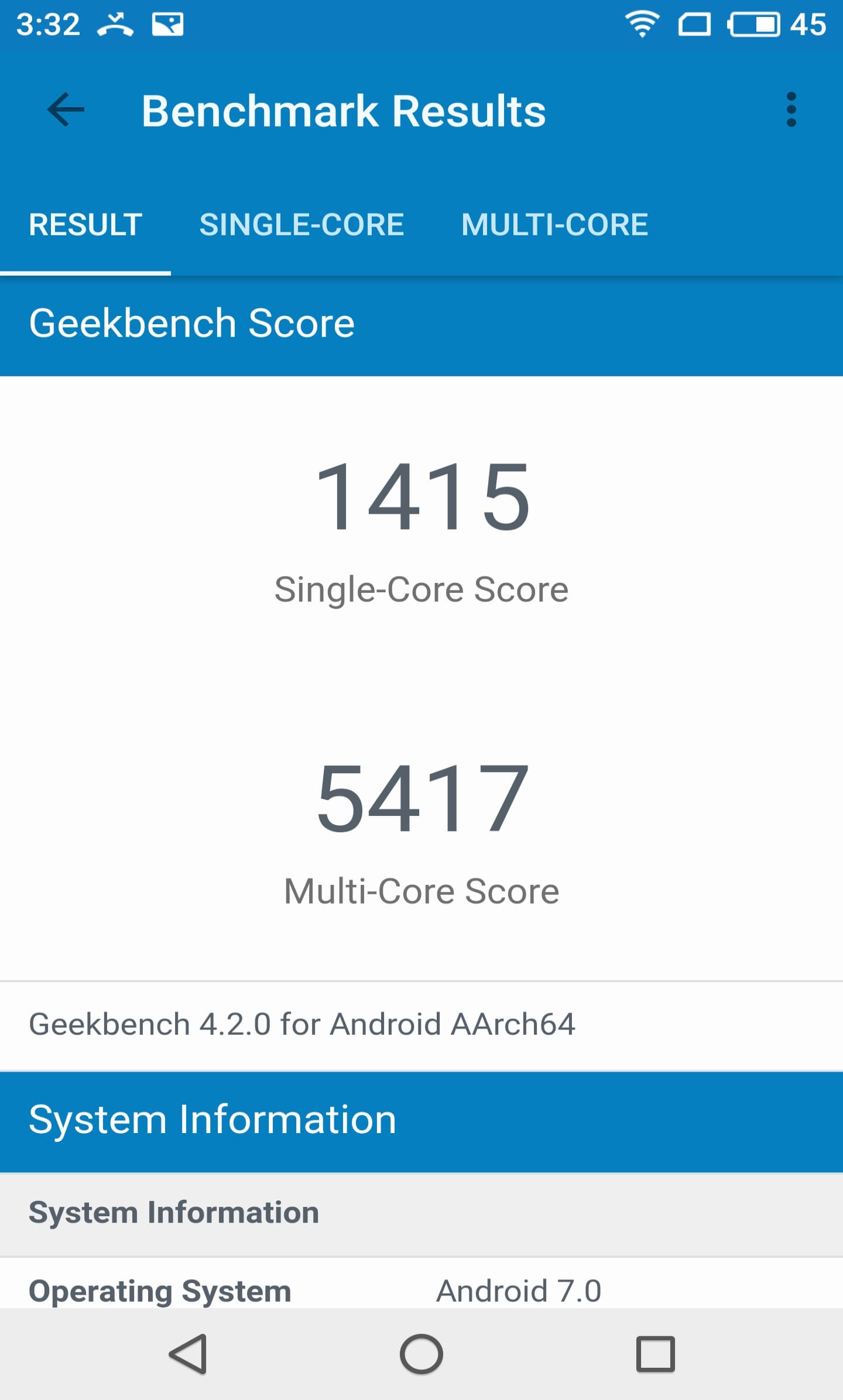 | GeekBench (v4.x) (больше — лучше) | 1415/5417 | 1925/6347 | 1896/4154 | 1360/6605 | 1894/6737 |