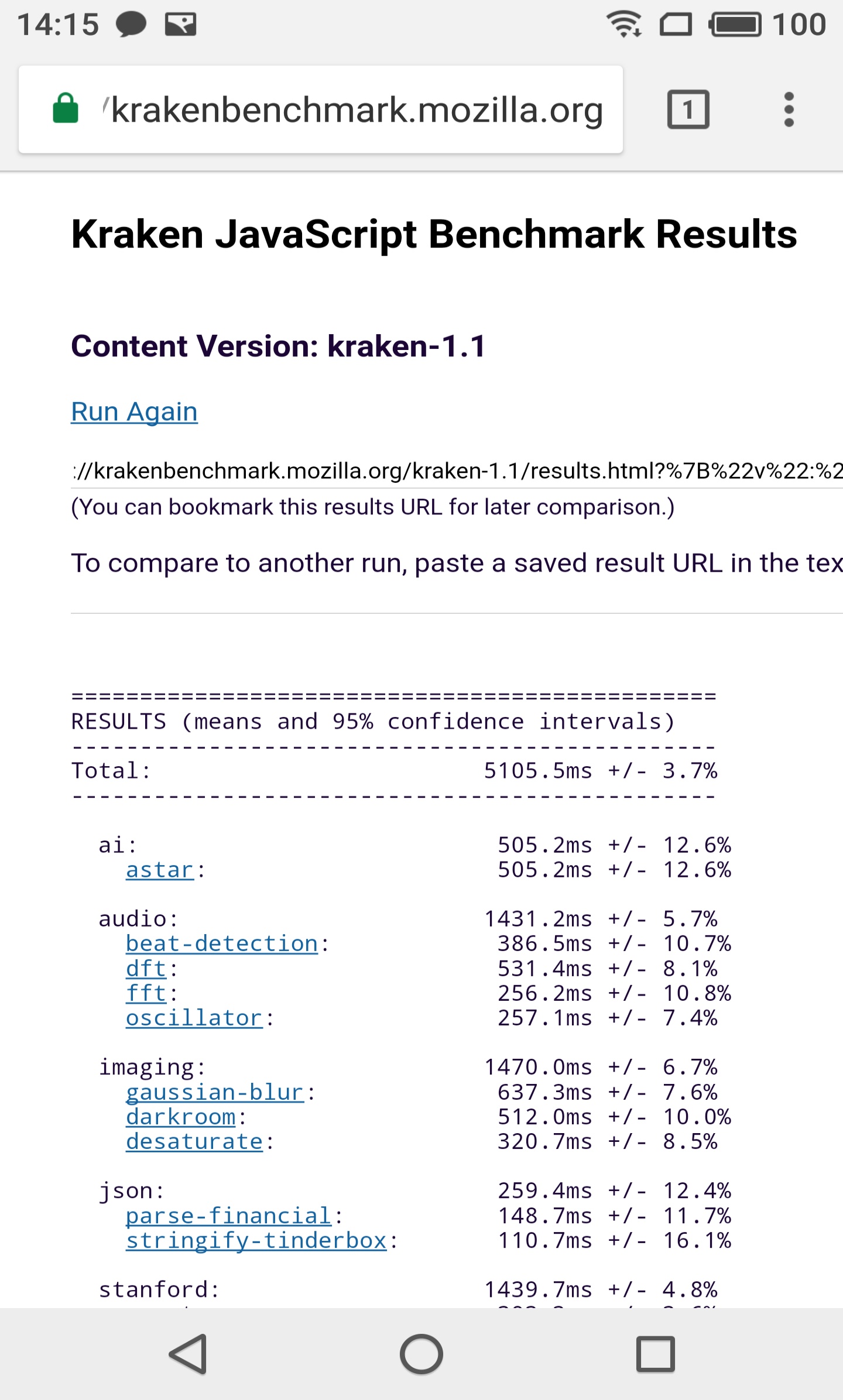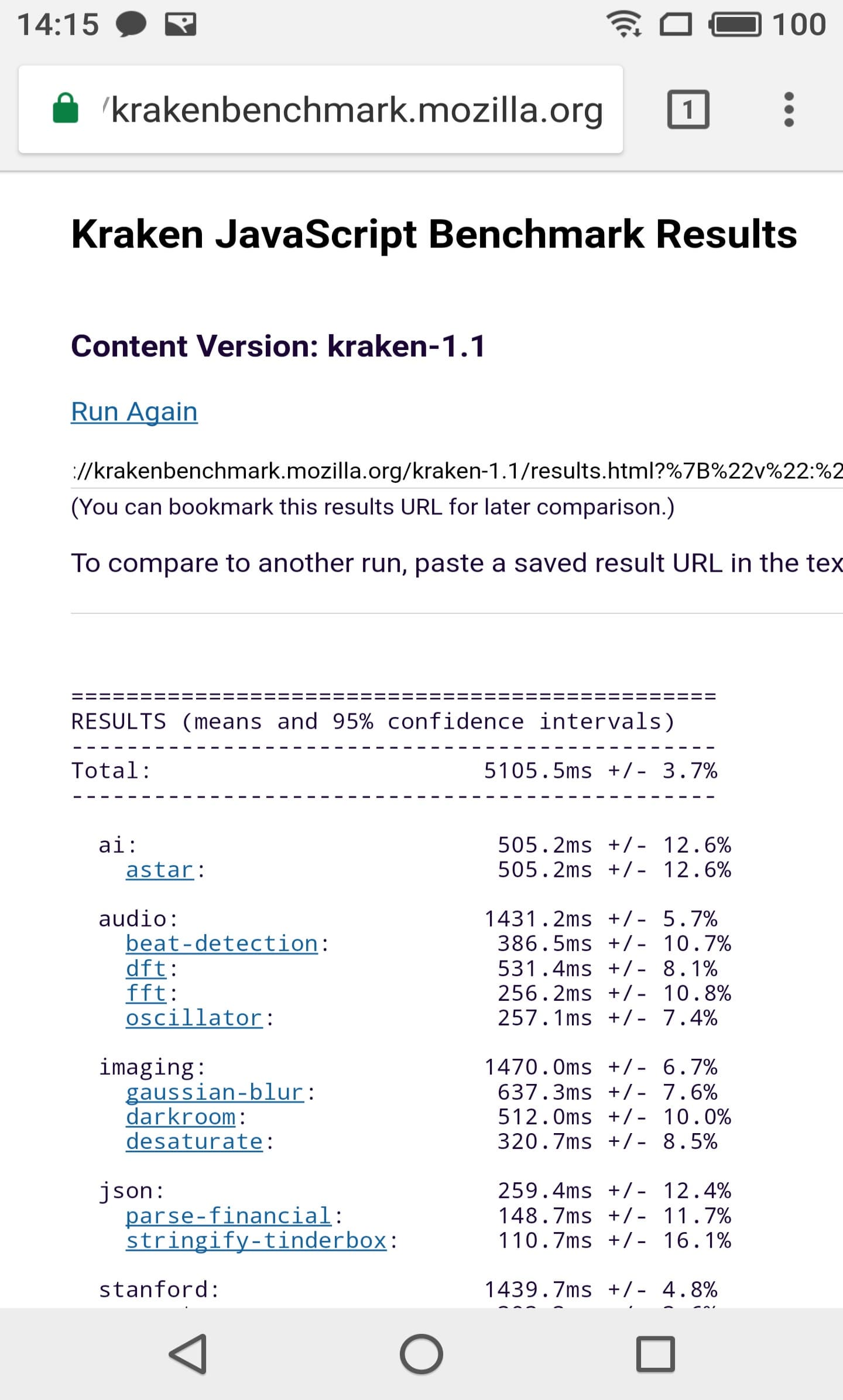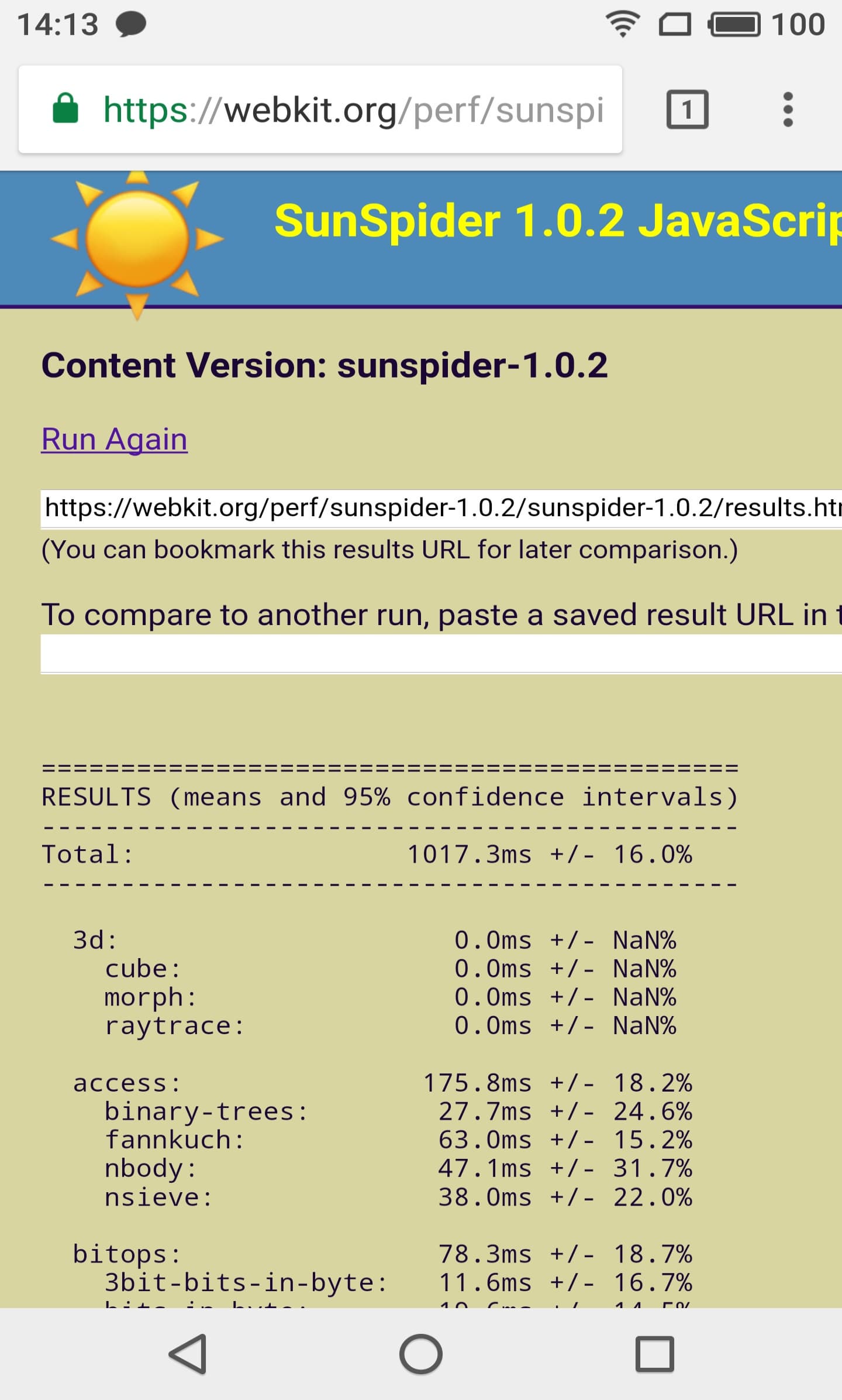 Что касается бенчмарков для оценки скорости движка javascript, то стоит всегда делать скидку на то, что в них результаты существенно зависят от браузера, в котором запускаются, так что сравнение может быть истинно корректным только на одинаковых ОС и браузерах, а такая возможность имеется при тестировании не всегда. В случае с ОС Android мы всегда стараемся использовать Google Chrome.