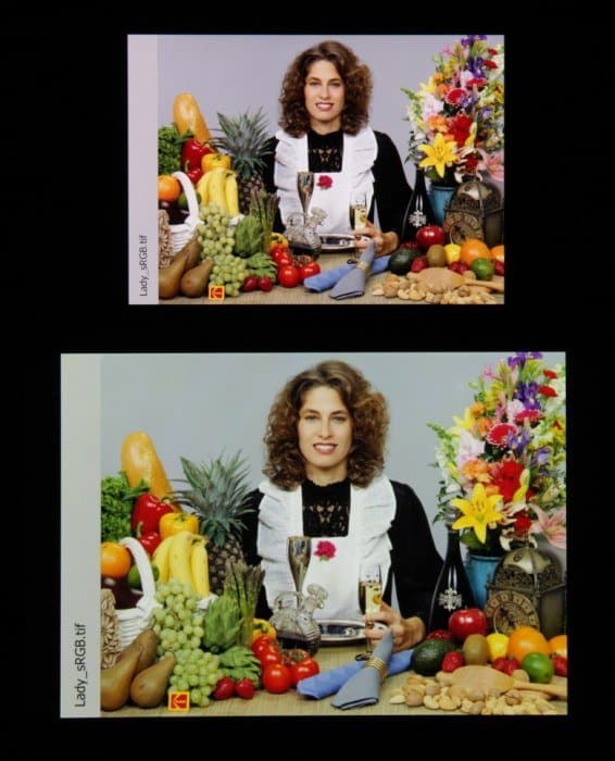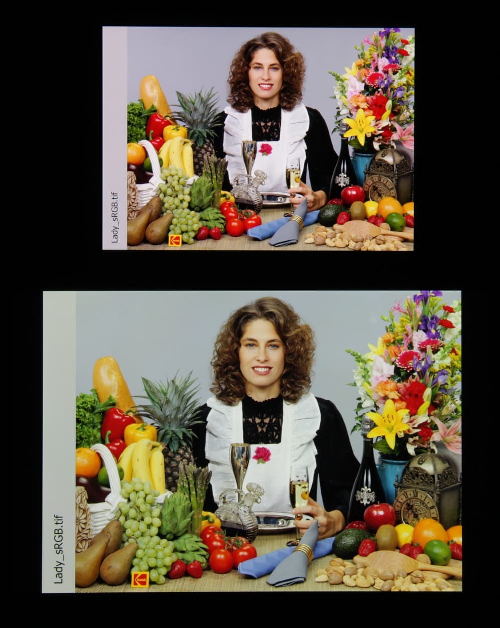 Отметим, что на экранах с широким цветовым охватом (без соответствующей коррекции) цвета́ обычных изображений, оптимизированных для устройств sRGB, выглядят неестественно насыщенными. Отсюда и рекомендация: в большинстве случаев смотреть кино, фотографии и все естественное лучше при выборе профиля Стандартный режим, и только если фотография сделана на установке Adobe RGB, имеет смысл переключить профиль на Фото. Аналогично, профиль Адаптивный режим уместен при просмотре видеоматериала с охватом DCI-P3, принятым в цифровом кинематографе.