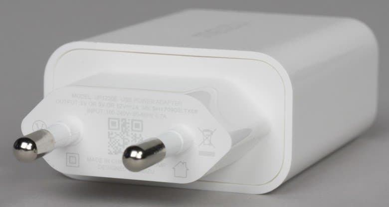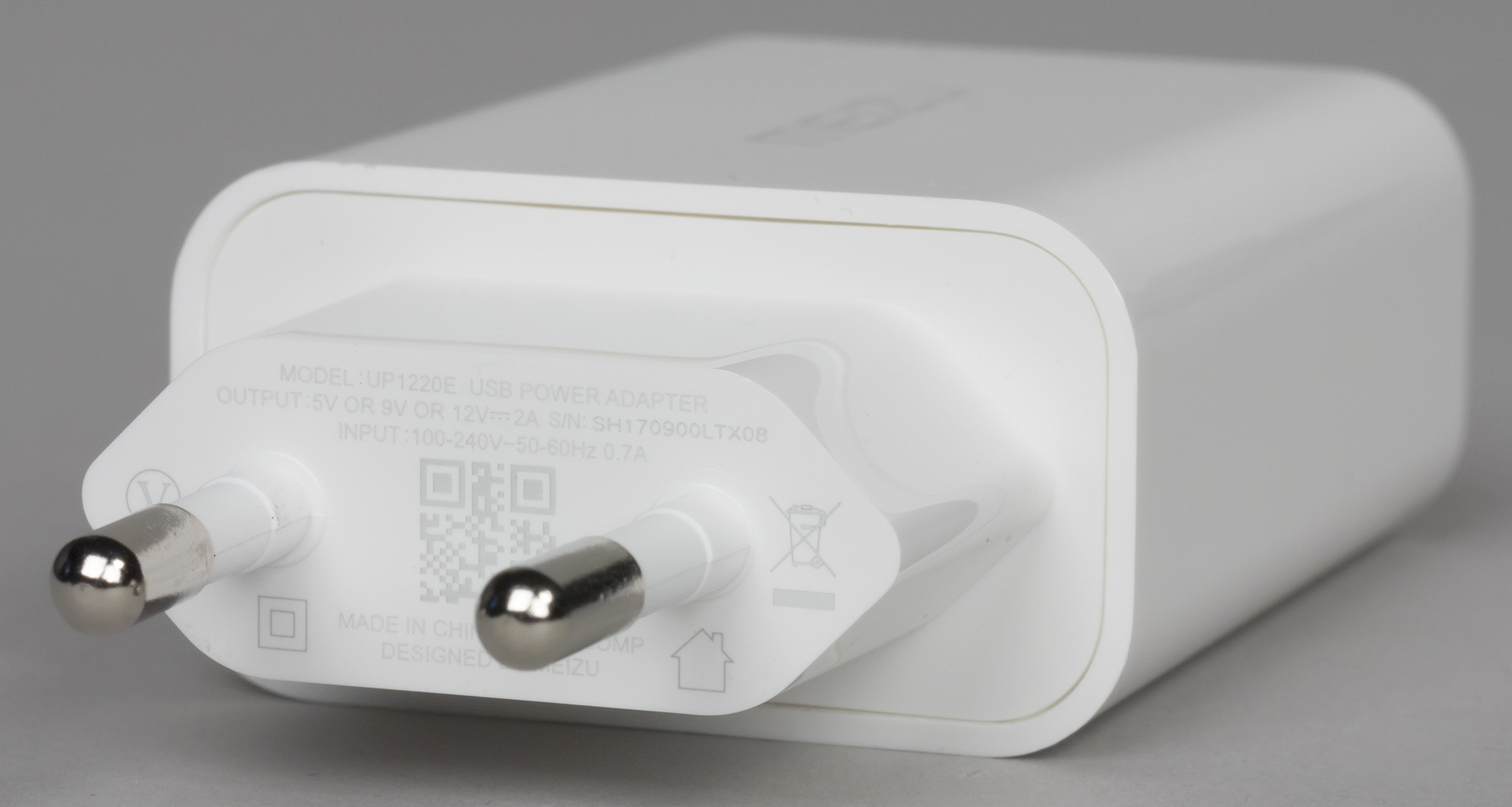Смартфон поддерживает быструю зарядку, обеспечивающую зарядку устройства с нуля до 50% за 30 минут. Полностью от комплектного сетевого адаптера аппарат заряжался в течение всего лишь 1,5 часов током 1,5 А при напряжении 9 В. Беспроводную зарядку смартфон не поддерживает.