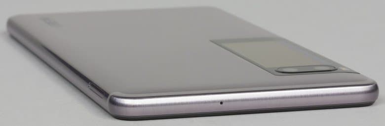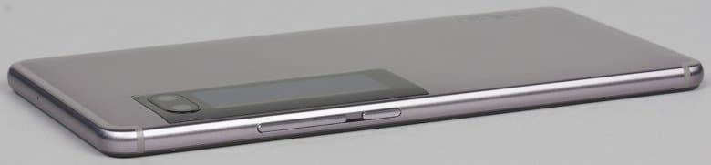 Размер дополнительного экрана, расположенного на тыльной стороне корпуса, составляет 20×45 мм, диагональ — 1,9 дюйма. Разрешение этого экранчика — 240×536, плотность точек около 307 ppi, то есть о зернистости изображения речи не идет. Он также выполнен по технологии AMOLED.