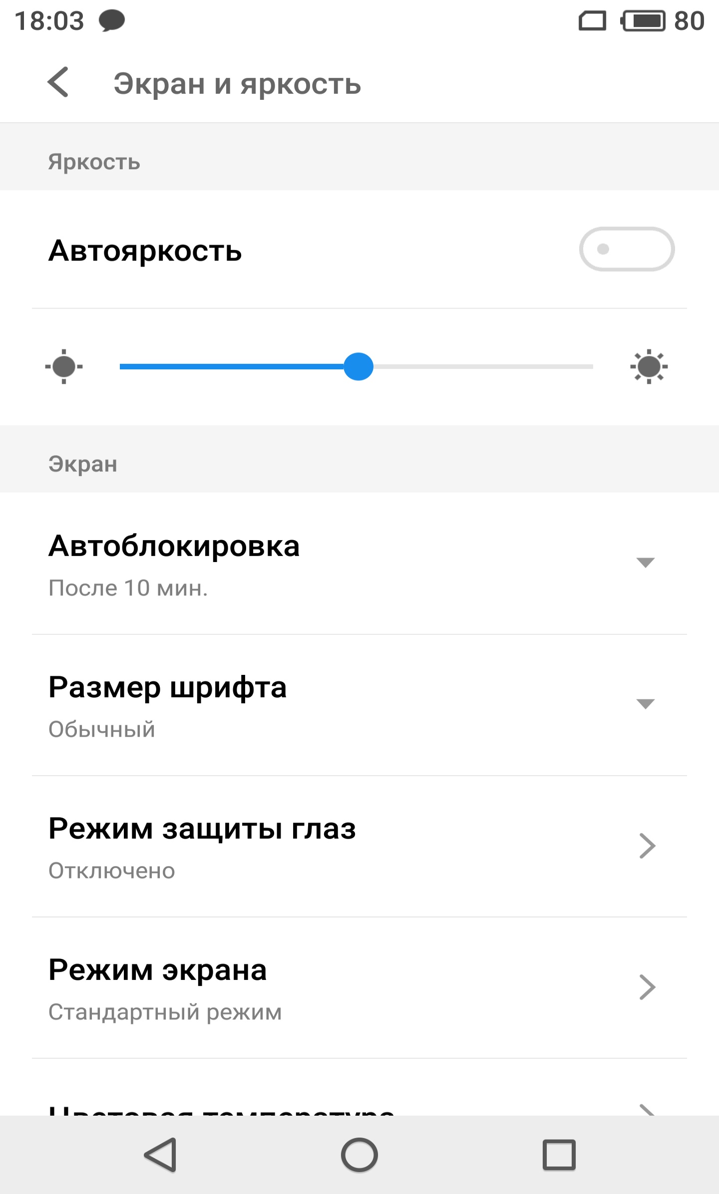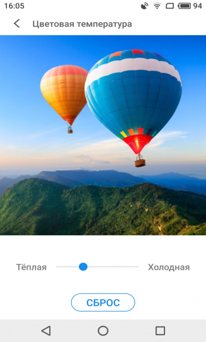 По умолчанию цветовая температура белого и серого полей высоковата, порядка 7500 К, но в настройках экрана есть ползунок регулировки цветовой температуры: