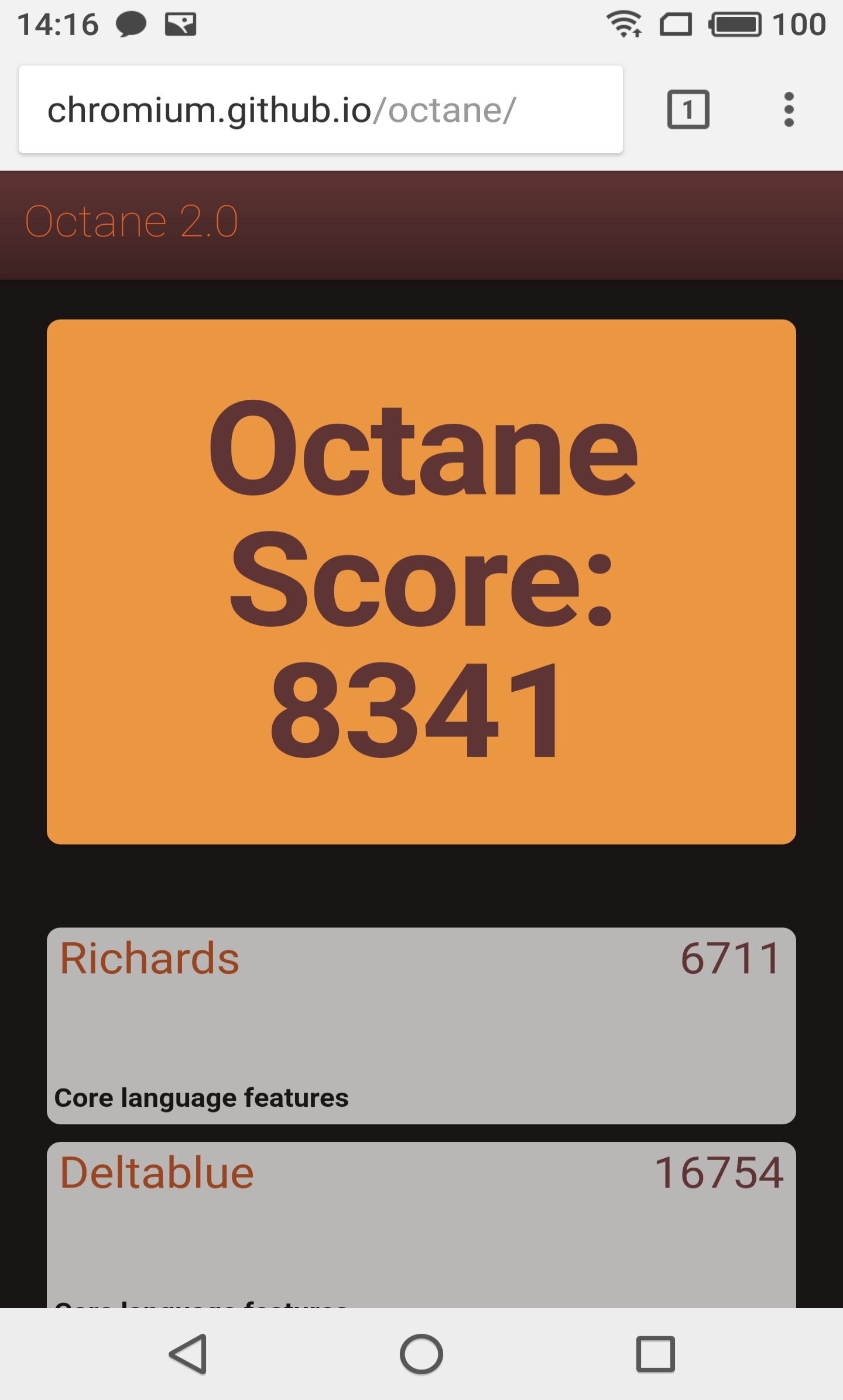 | Google Octane 2 (больше — лучше) | 8341 | 11815 | 8953 | 10070 | 9820 |