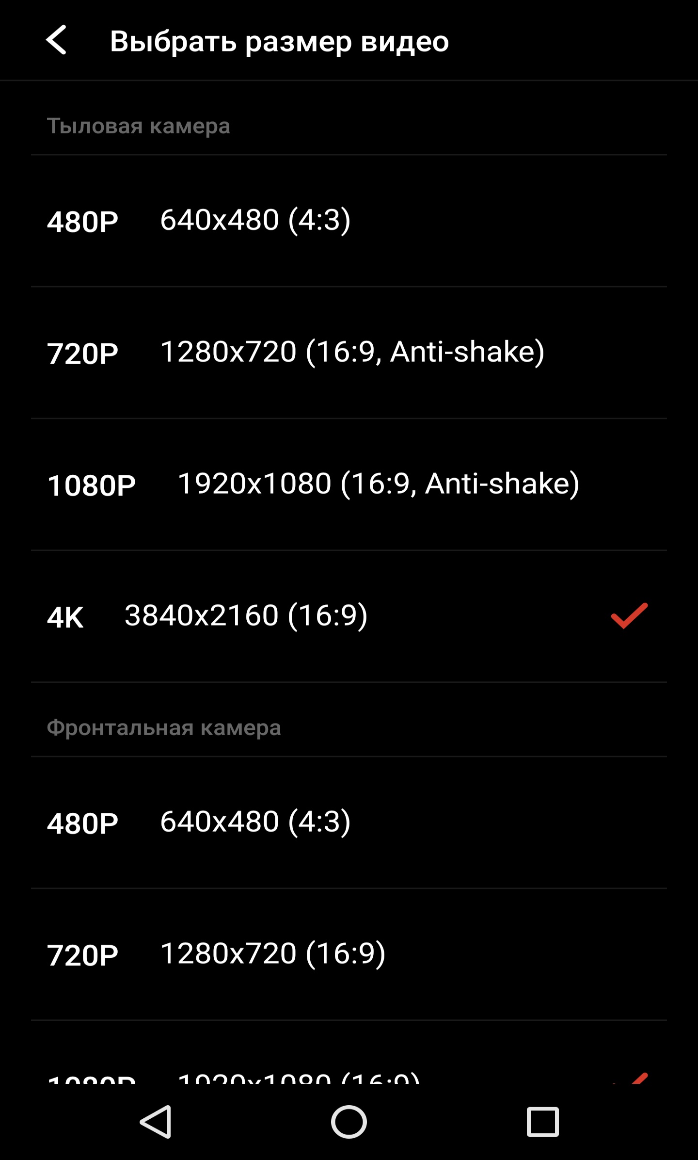 По всей видимости, данный аппарат не поддерживает DisplayPort Alt Mode для USB Type-C — вывод изображения и звука на внешнее устройство при подключении к порту USB. Работу в таком режиме мы тестировали совместно с адаптером USB Type-C → HDMI (компании Choetech). Поэтому пришлось ограничиться тестированием вывода изображения видеофайлов на экран самого устройства. Для этого мы использовали набор тестовых файлов с перемещающимися на одно деление за кадр стрелкой и прямоугольником (см. «Методика тестирования устройств воспроизведения и отображения видеосигнала. Версия 1 (для мобильных устройств)»). Снимки экрана с выдержкой в 1 с помогли определить характер вывода кадров видеофайлов с различными параметрами: варьировались разрешение (1280 на 720 (720p), 1920 на 1080 (1080p) и 3840 на 2160 (4K) пикселей) и частота кадров (24, 25, 30, 50 и 60 кадр/с). В тестах мы использовали видеоплеер MX Player в режиме «Аппаратный». Результаты теста сведены в таблицу: