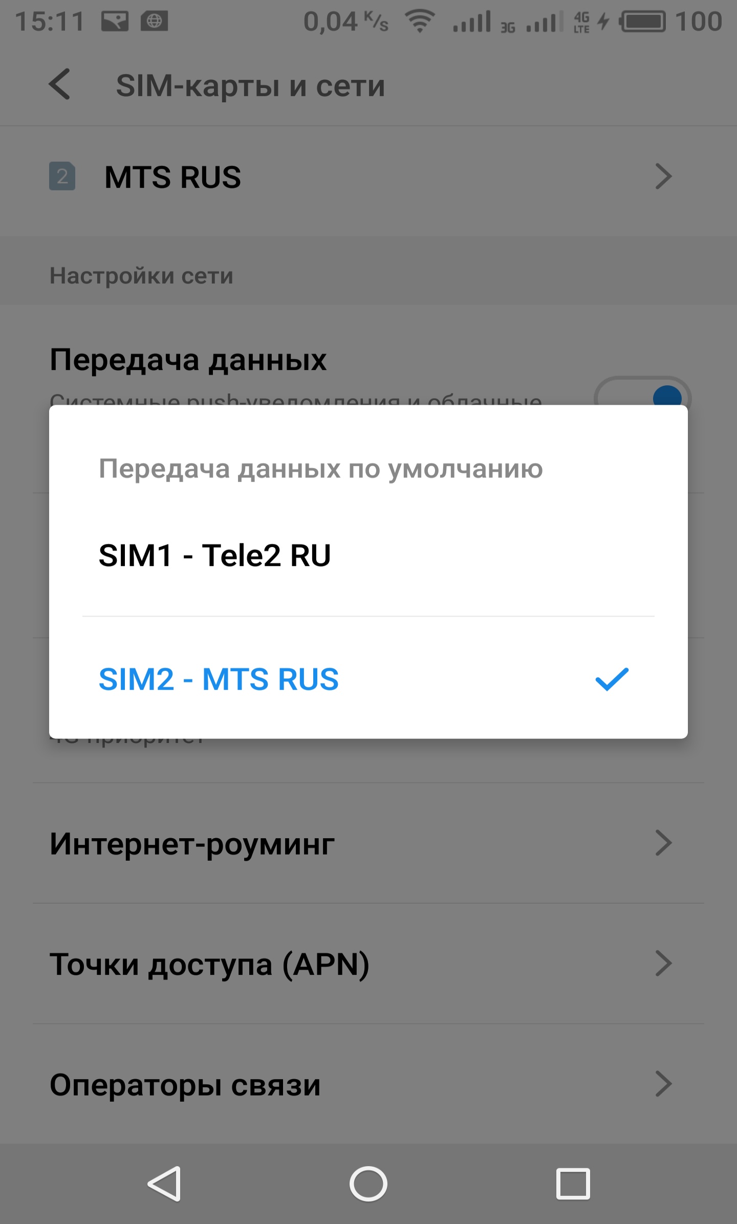 Выбор между двумя SIM-картами для осуществления вызова и отправки SMS традиционно для аппаратов Meizu осуществляется только в момент соединения, заранее в меню его сделать нельзя, в настройках можно задать только карточку для передачи данных. Смартфон обеспечивает работу с двумя SIM-картами по стандарту Dual SIM Dual Standby.
