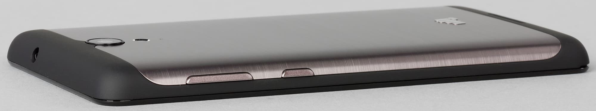 Модуль камеры буквально на миллиметр выпирает за пределы поверхности корпуса, и благодаря сильно покатой задней стенке смартфон заметно покачивается при прикосновениях к экрану, лежит на твердой поверхности весьма неустойчиво. Рядом с камерой можно заметить глазок не очень яркой односегментной светодиодной вспышки.