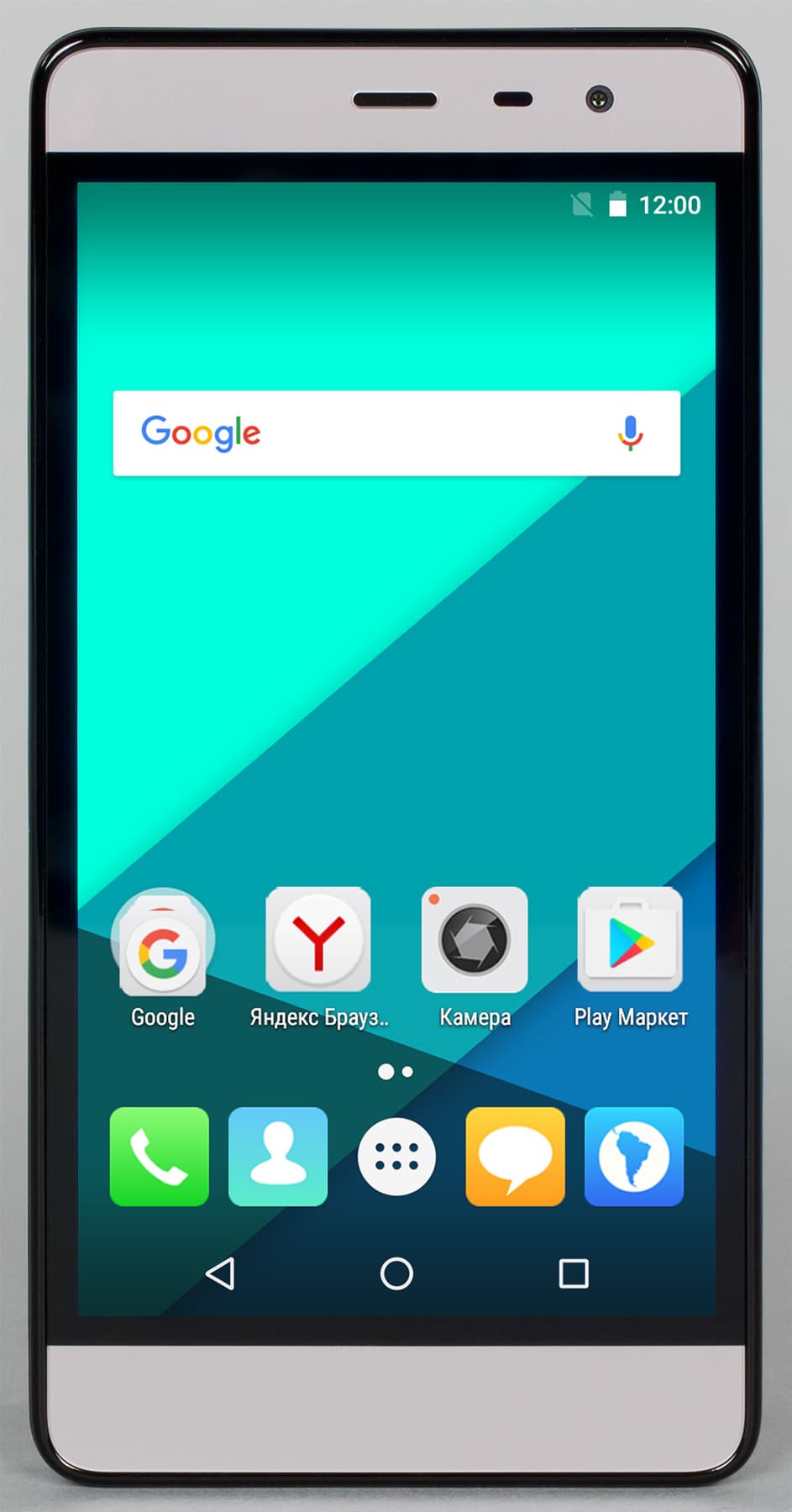Оснащение передней панели минимально: наверху над экраном имеется сенсор освещения, камера без вспышки, но нет привычного светодиодного индикатора событий.