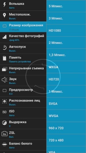 Меню настроек удобное, наглядное и очень простое в использовании. Слева всплывает вертикальный список с основными разделами меню, при нажатии на каждый из которых справа разворачивается второй свиток с опциями, относящимися к данной функции. Удобно, но случается у камеры странное «залипание», когда она продолжает делать квадратные снимки с разрешением 3,7 Мп (1944×1944), даже если в меню в этот момент выбрано максимальное разрешение 5 Мп (2592×1944). В итоге нам помог лишь полный возврат аппарата к заводским настройкам (hard reset), после этого камера может начать вести себя адекватно, а может опять застопориться на квадратном формате. Поскольку точно такая же проблема обнаружилась у одновременно попавшего к нам на тест смартфона Micromax Canvas Juice A1, а модули камер у них разные, то можно предположить, что ошибка кроется где-то в прошивке и вполне может быть со временем исправлена.
