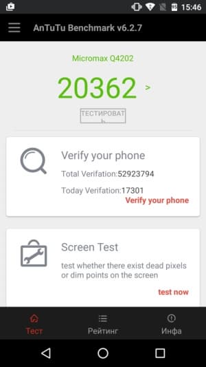 | AnTuTu (v6.x) (больше — лучше) | 20362 | 45277 | 29450 | 23801 | 40659 |