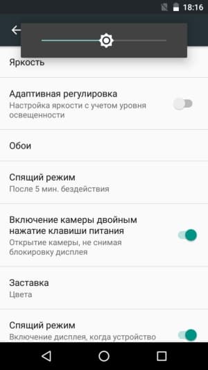 Яркость дисплея можно подстраивать вручную или задавать автоматические настройки, основанные на работе датчика внешнего освещения. Тест AnTuTu диагностирует поддержку 5 одновременных касаний мультитач. Дополнительных способов активации дисплея с помощью двойного постукивания или иных жестов не предусмотрено.