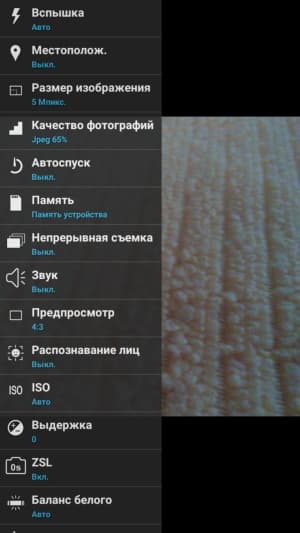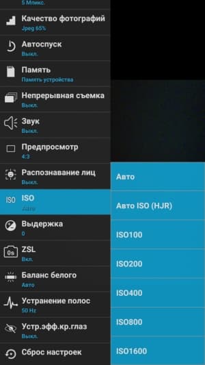Ручных настроек в меню не так много, но все необходимое имеется. Вручную можно выставлять экспозицию, светочувствительность (до ISO 1600), баланс белого, выдержку, выбирать дополнительные режимы и цветовые эффекты, есть HDR. Передавать управление настройками камеры сторонним приложениям с помощью Camera2 API нельзя, возможности записи снимков в RAW тоже нет.