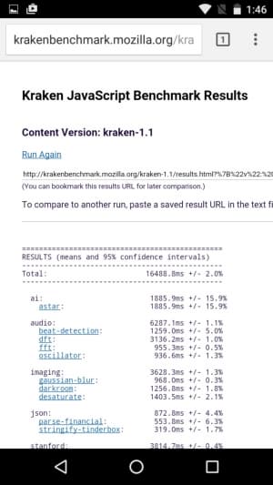 Что касается бенчмарков для оценки скорости движка javascript, то стоит всегда делать скидку на то, что в них результаты существенно зависят от браузера, в котором запускаются, так что сравнение может быть истинно корректным только на одинаковых ОС и браузерах, а такая возможность имеется при тестировании не всегда. В случае с ОС Android мы всегда стараемся использовать Google Chrome.