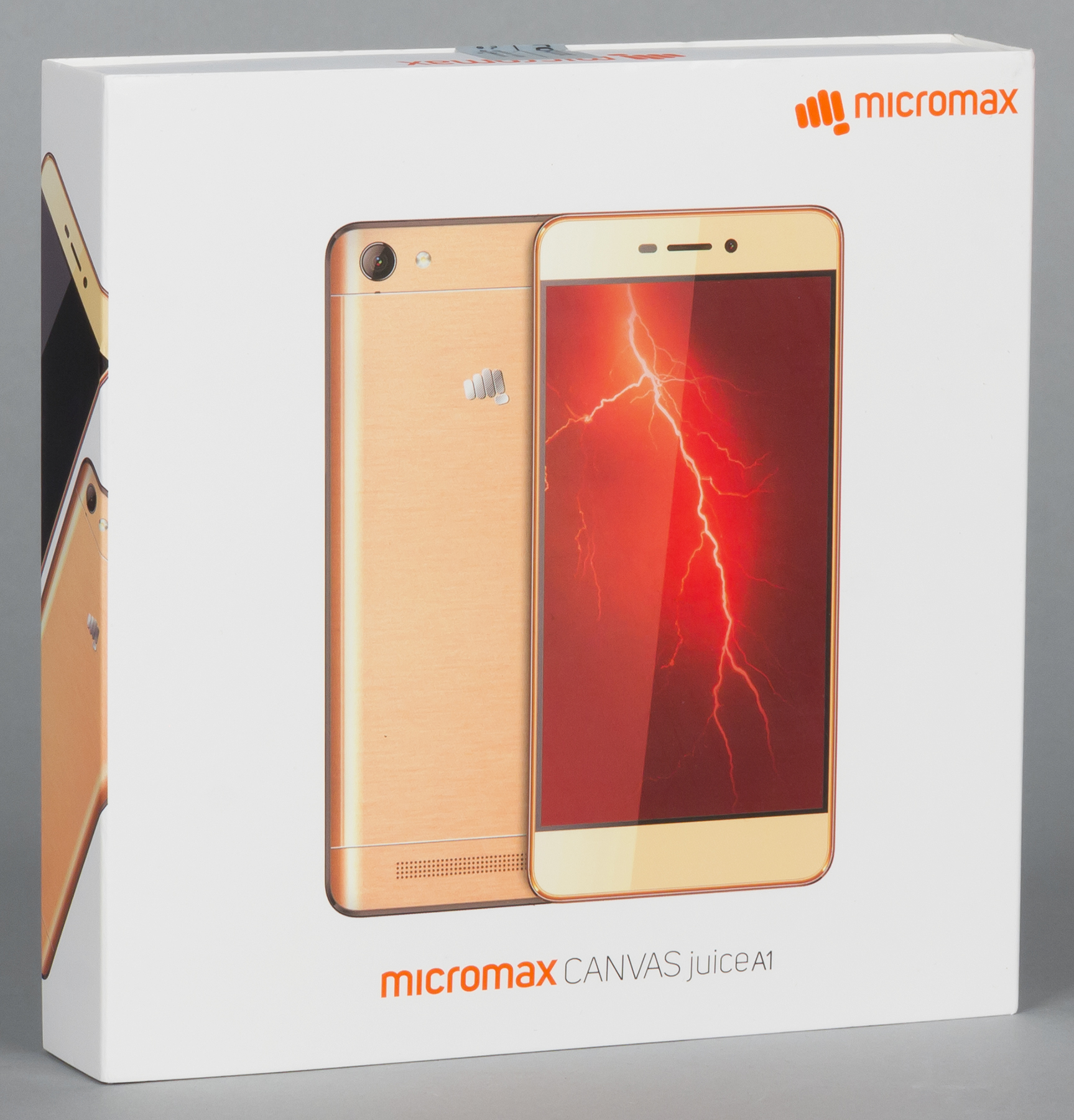 Micromax Canvas Juice A1 поставляется в продажу в довольно крупной плоской коробке квадратной формы с твердой картонной суперобложкой. Упаковки разных смартфонов компании отличаются именно этой суперобложкой, на которую наносятся все обозначения, логотипы и спецификации, а внутренняя часть остается абсолютно чистой и во всех случаях одинаковой.