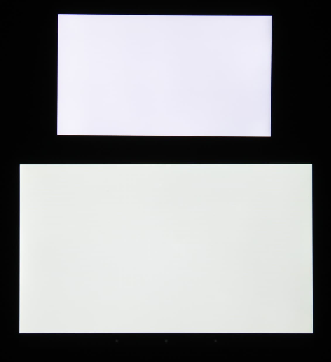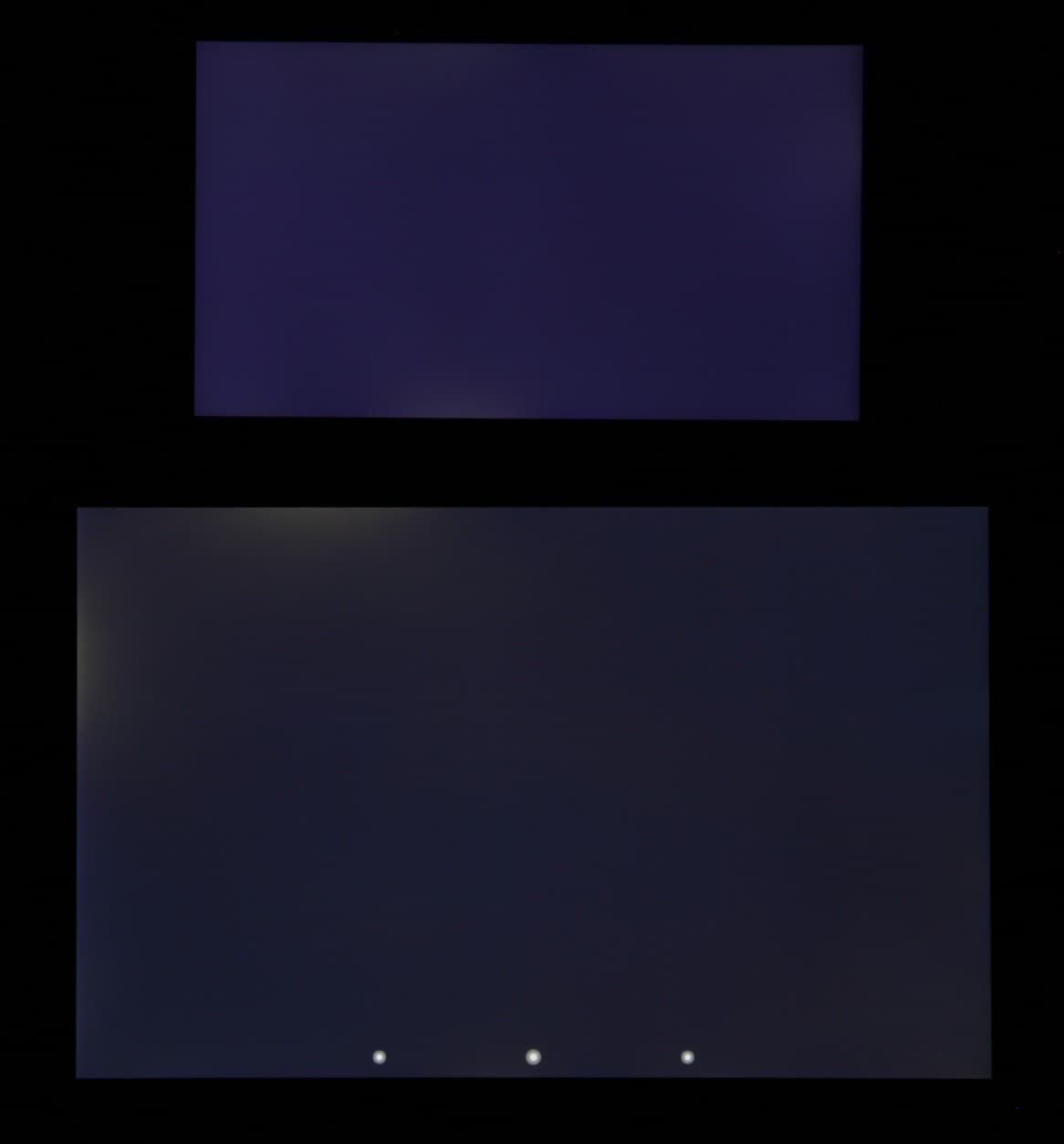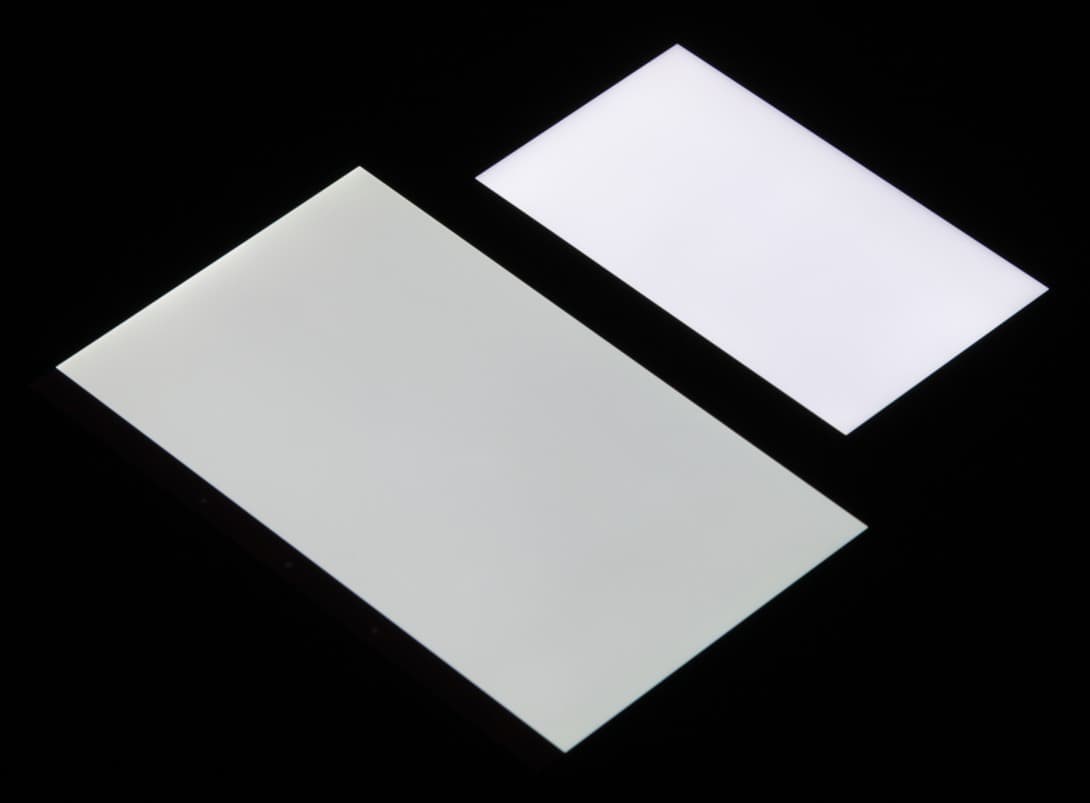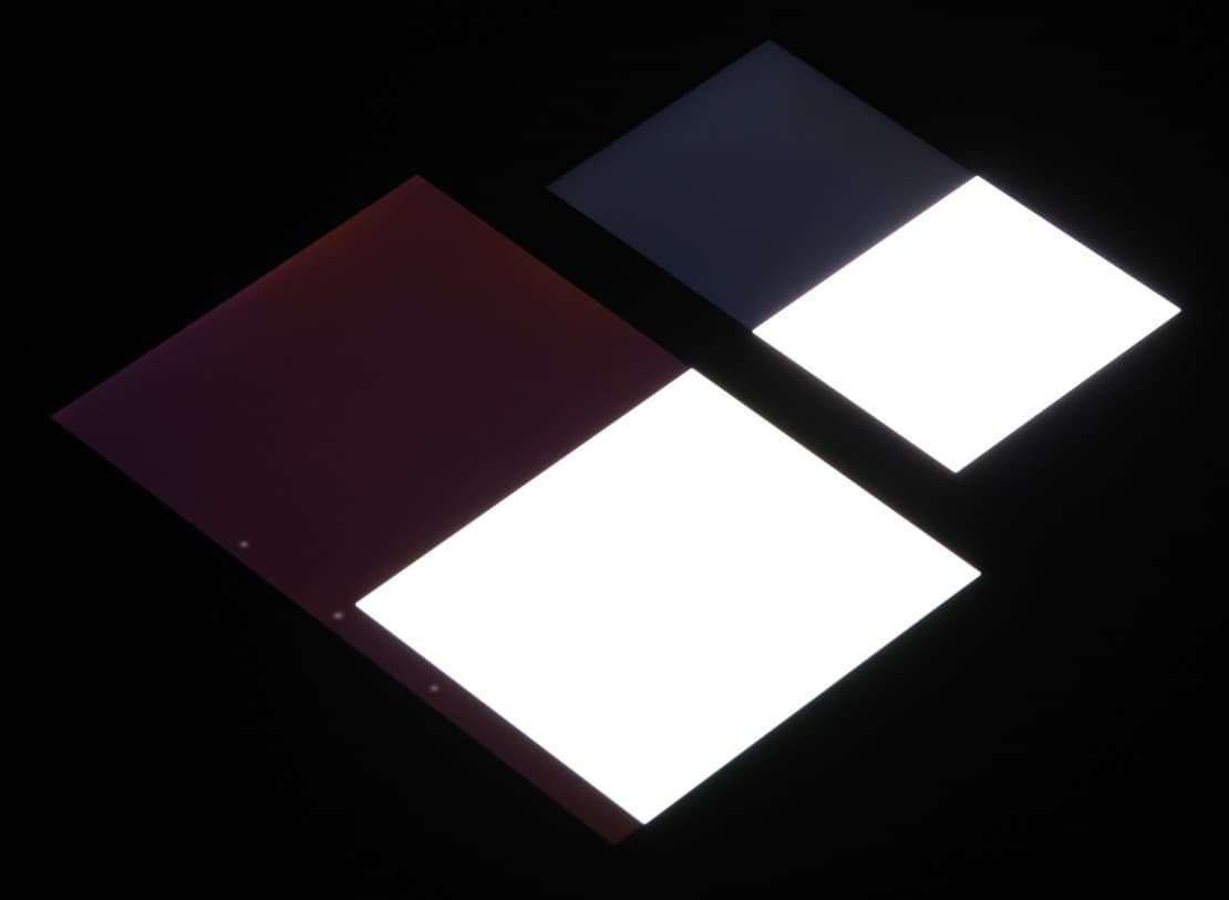 При перпендикулярном взгляде равномерность черного поля неидеальная, так как по краю есть участки с немного повышенной яркостью черного поля:
