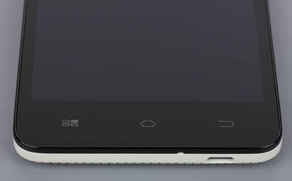Ниже, под экраном, располагается традиционный ряд из трех аппаратных кнопок управления системой и приложениями. Все кнопки сенсорные, они имеют достаточно тусклую, но достаточную для различения в полумраке подсветку белесого цвета. Повлиять как-либо на длительность и режимы работы подсветки с помощью настроек нельзя.