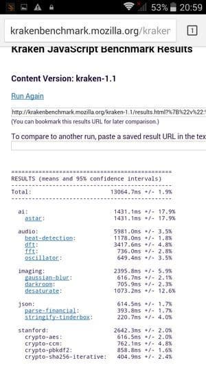Что касается бенчмарков для оценки скорости движка javascript, то стоит всегда делать скидку на то, что в них результаты существенно зависят от браузера, в котором запускаются, так что сравнение может быть истинно корректным только на одинаковых ОС и браузерах, а такая возможность имеется при тестировании не всегда. В случае с ОС Android мы всегда стараемся использовать Google Chrome.