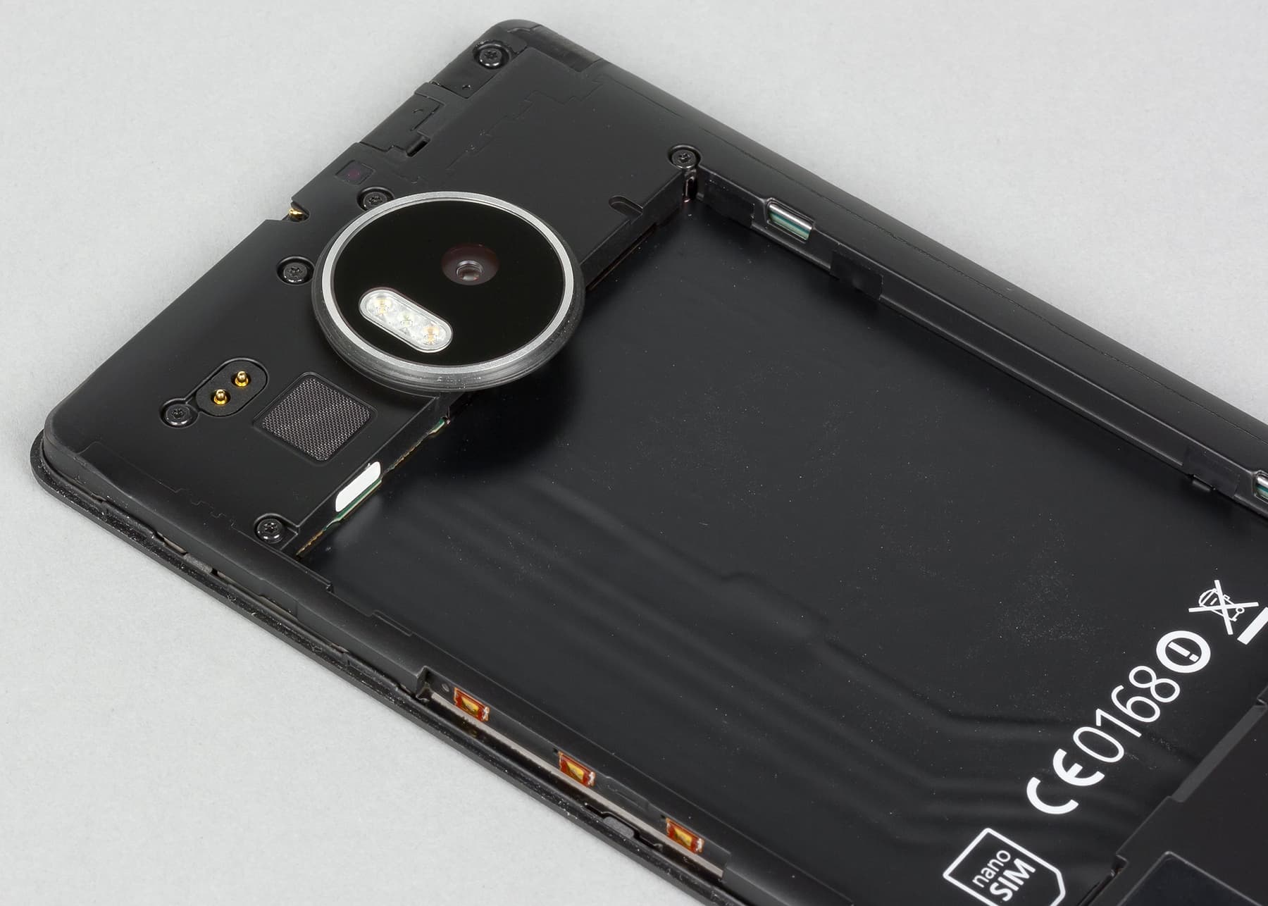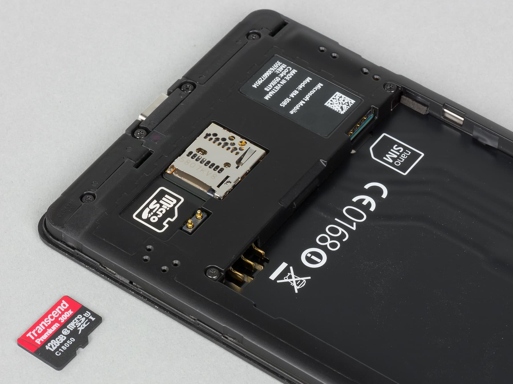 Смартфон имеет съемную заднюю крышку, под которой находится батарея и слоты для SIM-карт формата Nano-SIM и карты памяти. Батарею также можно вытащить, что в любом случае потребуется для установки SIM-карт. Слоты подпружинены, пользоваться ими достаточно удобно.