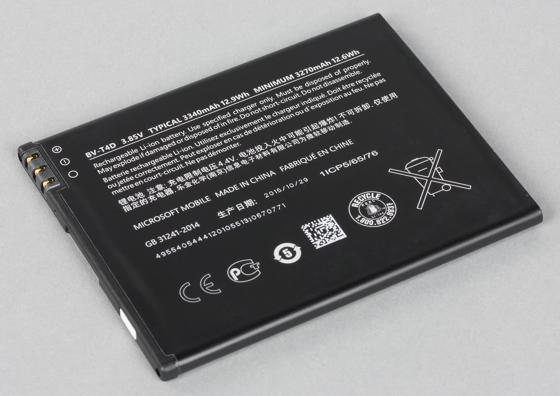 - Съемный аккумулятор 3340 мА·ч