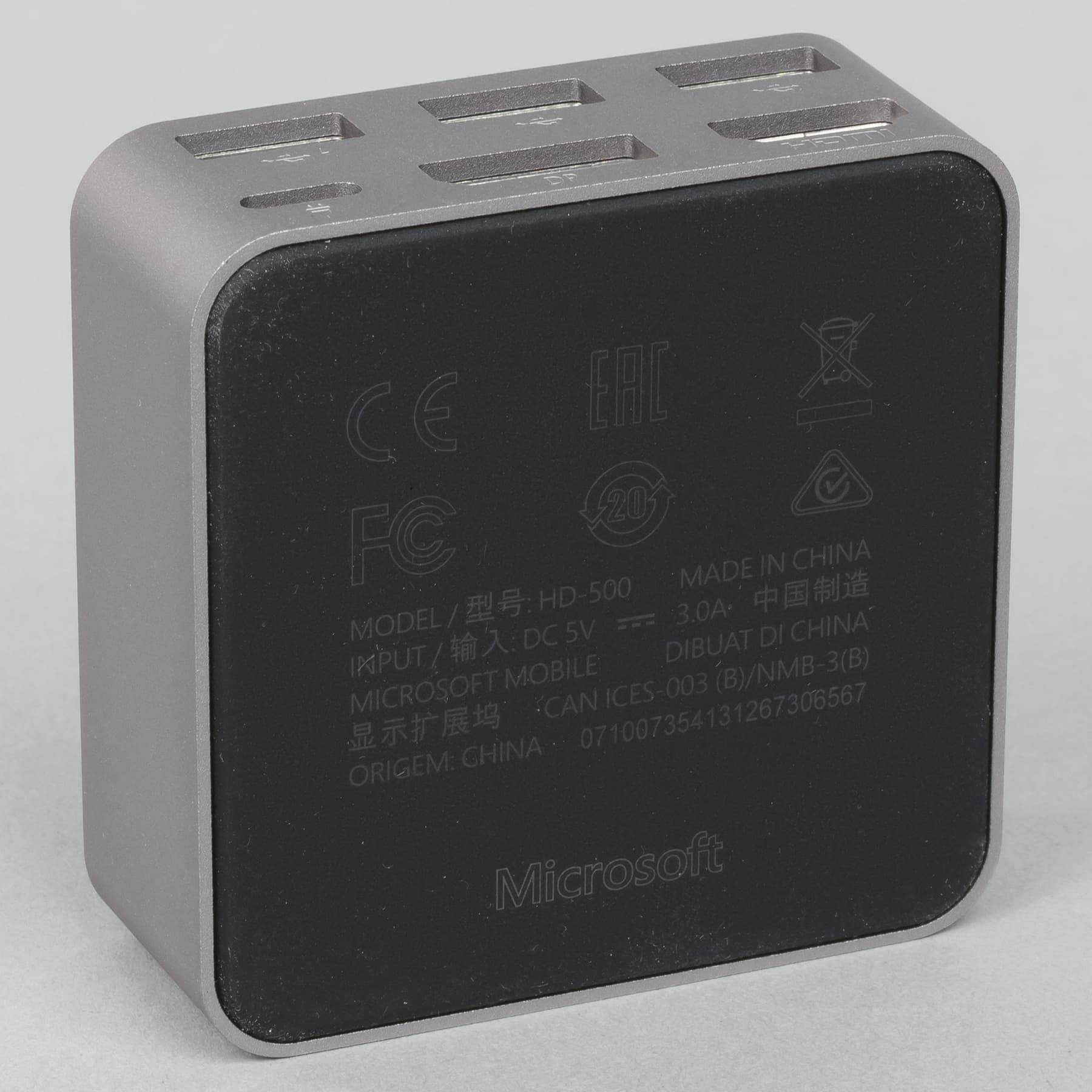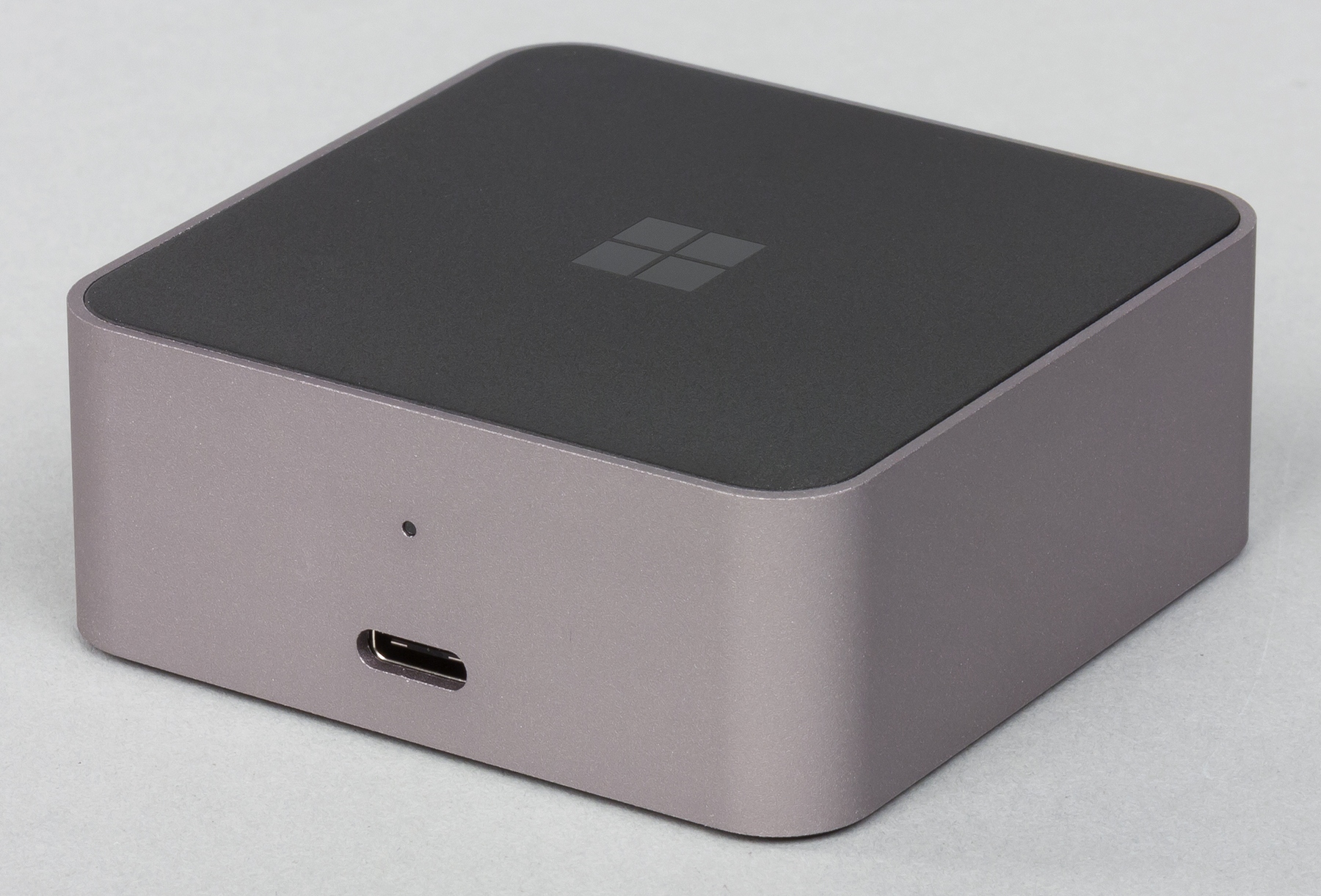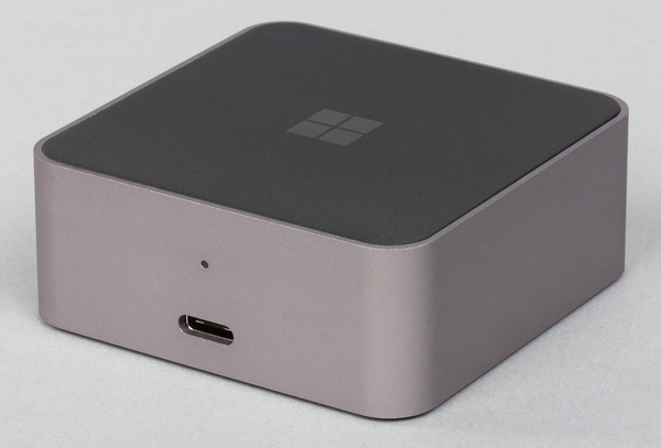 Второй вариант — использование фирменного дока Microsoft Display Dock (модель HD-500). Это компактное (64×64×26 мм) устройство имеет тяжелый монолитный металлический корпус. Верхняя крышка у него из пластика, а дно представляет собой пластину из резины, надежно удерживающую док на столе.