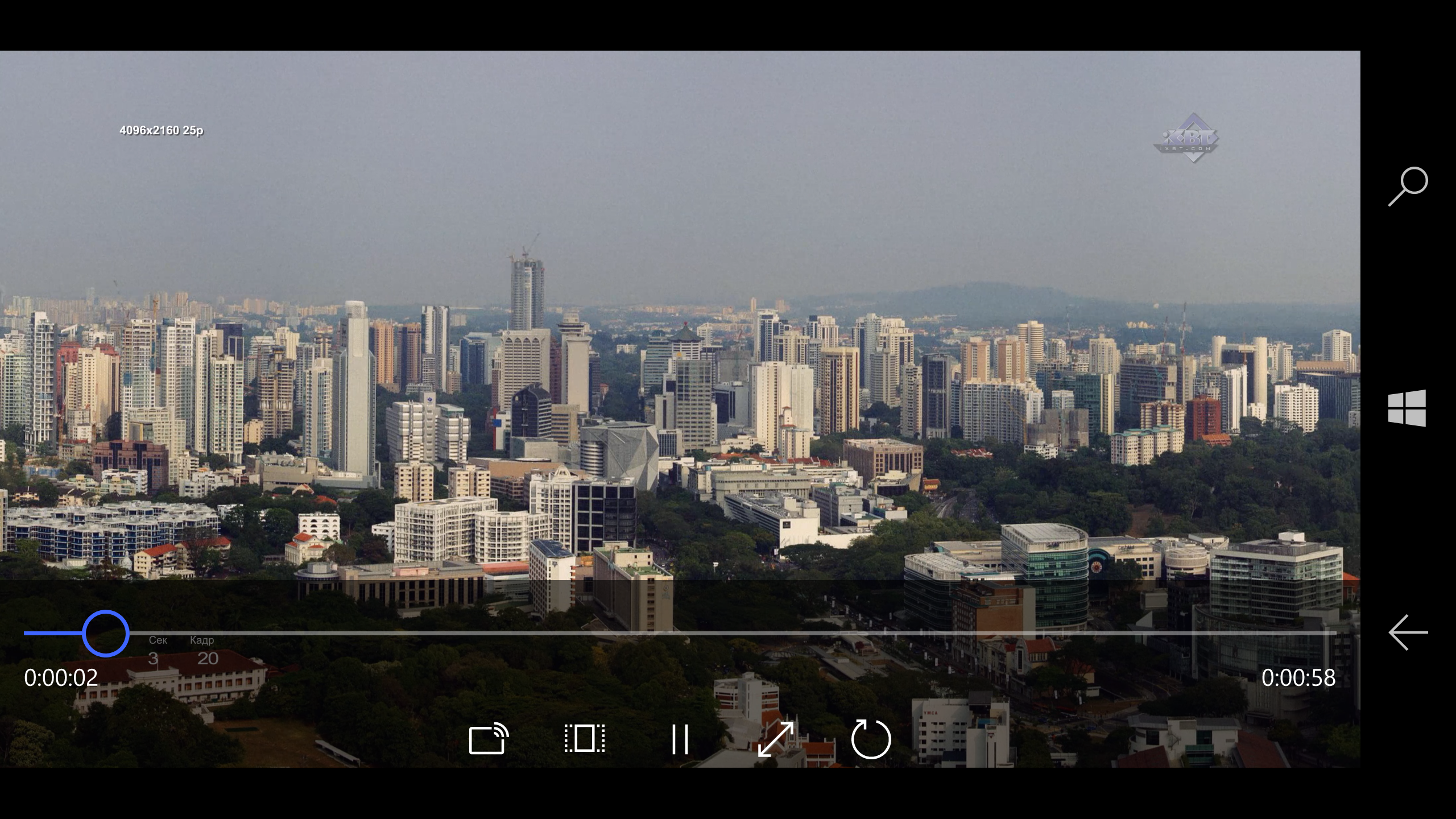 В данном разделе мы начнем проверку с воспроизведения файлов из нашей методики. Штатный плеер справился со всеми видео кодеками стандартного набора, он поддерживает не только MP4, но и AVI и MKV. Однако декодировать AC3 он так и не умеет. Шансов, что в этом плане что-то может измениться, на наш взгляд, немного. К счастью, в магазине уже есть VLC, который не имеет подобных проблем, однако работает не очень стабильно на тестируемом устройстве и вероятно не полностью поддерживает аппаратные декодеры платформы. Напомним, что Microsoft относительно недавно реализовала доступ к файловой системе телефона и карты памяти, так что медиафайлы вы можете записывать любые и в любые папки.