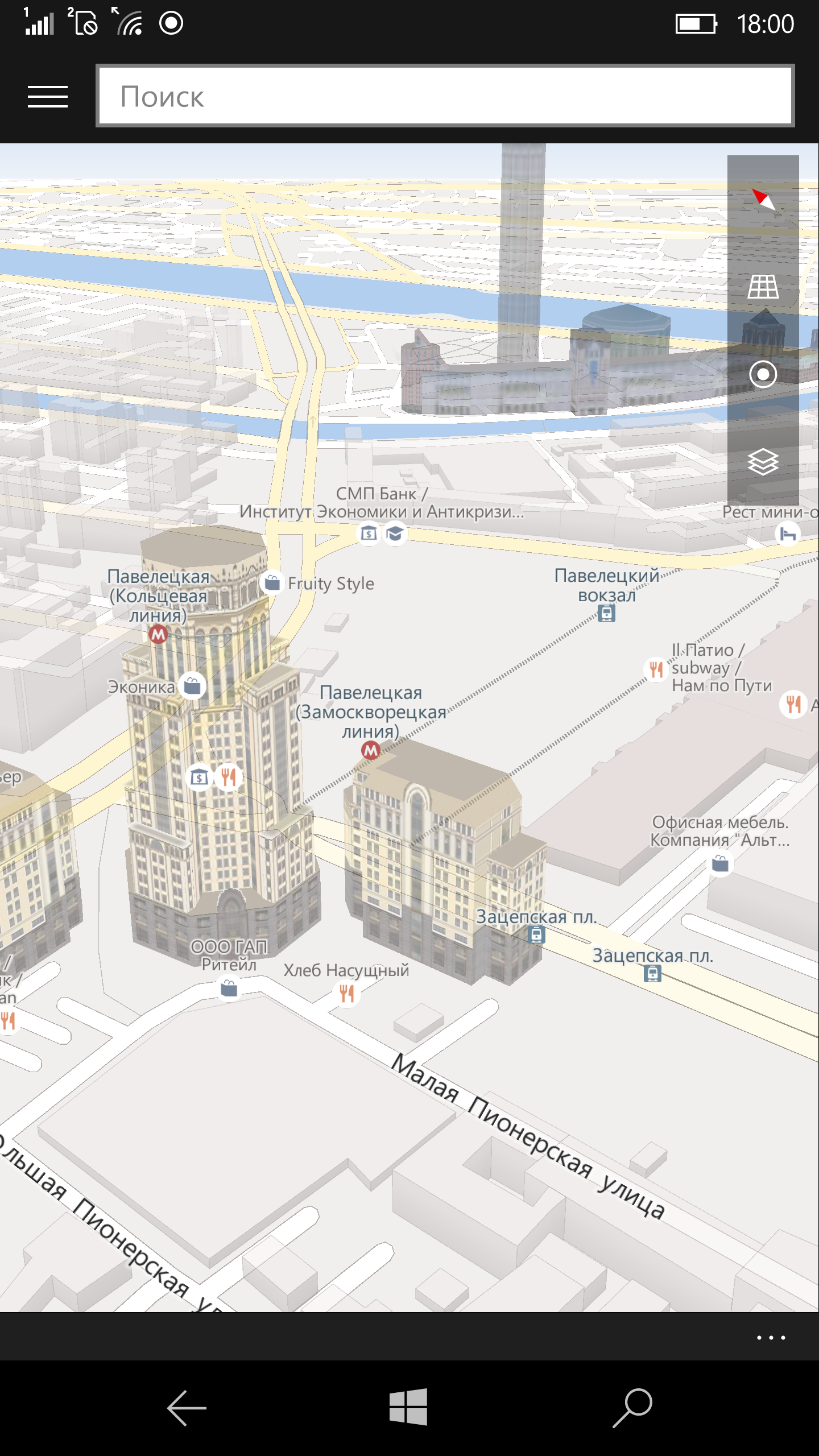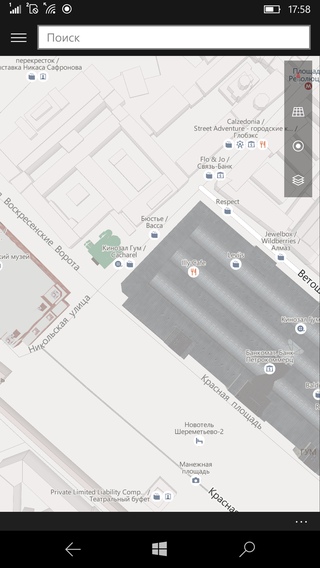 Как мы помним, продукты Microsoft (Nokia) интересны и своими картами, которые отличаются хорошим покрытием и могут использоваться в офлайн-режиме. Для их эффективного использования в смартфоне присутствует приемник сигналов навигационных систем GPS и Глонасс. Субъективное тестирование в городских условиях показало, что стартует система быстро, прием стабильный, точность соответствует другим моделям.