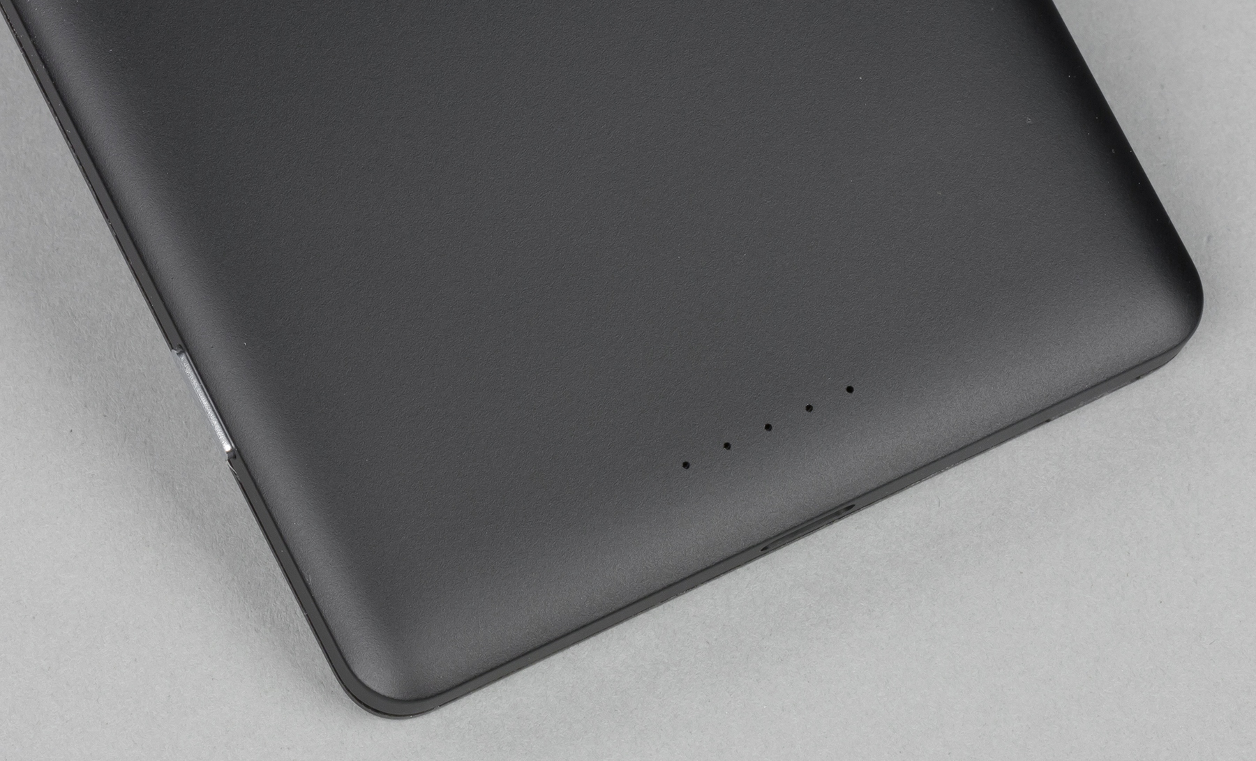Выше камеры и симметрично в нижней части панели мы видим по пять еще заметных точек. Крайние правые являются отверстиями и за ними, вероятно, установлены дополнительные микрофоны.